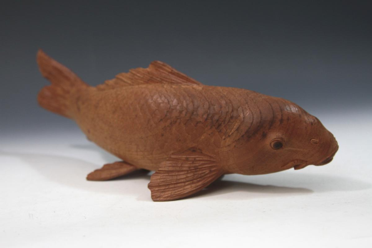 ★★★ 北村悦成 木彫り 鯉 置物 ★★★