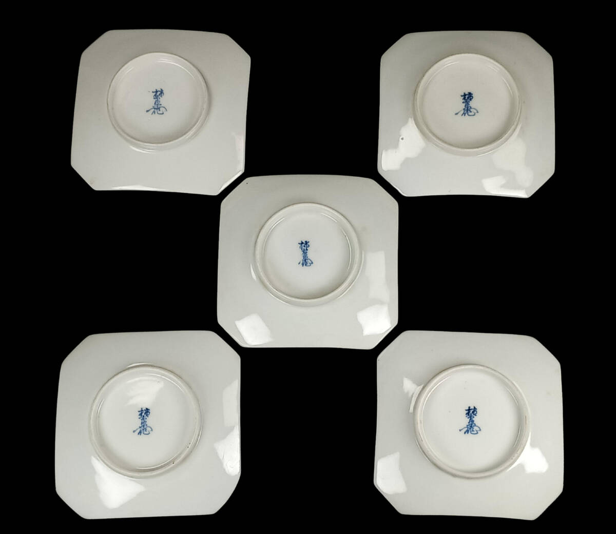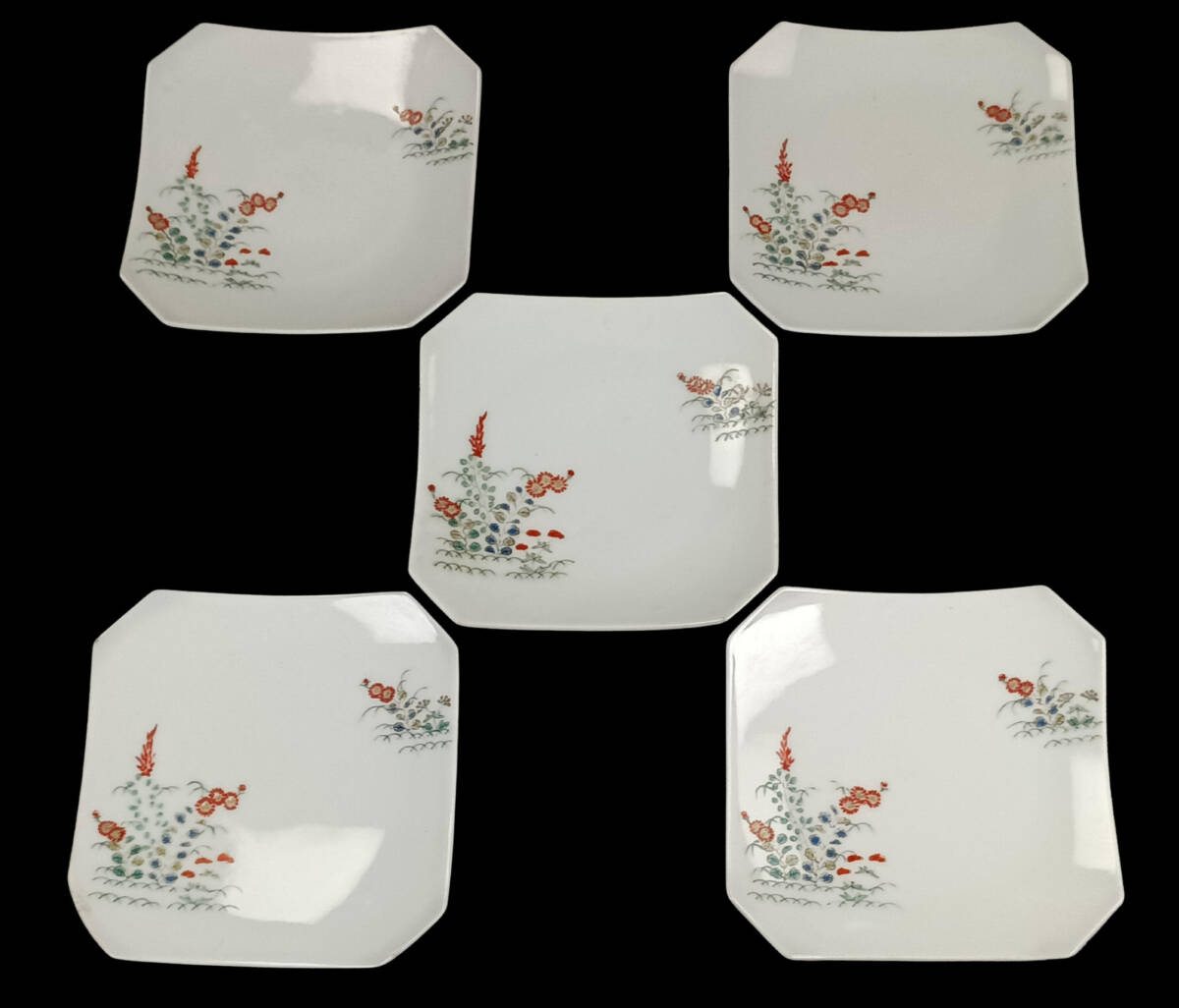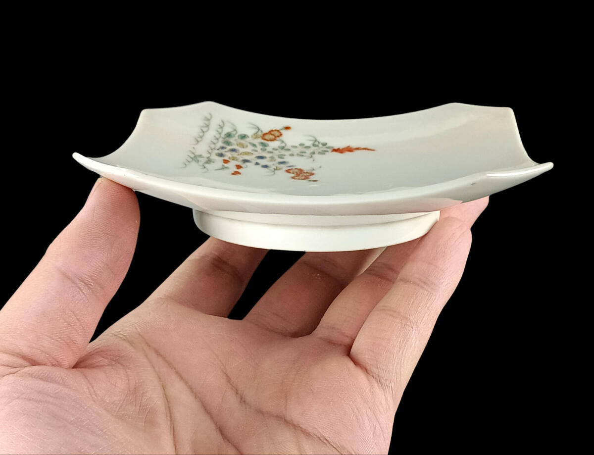 【偲】十二代 柿右衛門 伊万里 菓子皿 四季草花図 色絵皿 5客 陶磁器 銘々皿 茶道具 煎茶 茶器 染付 直径約11.5㌢ 皿 j-287