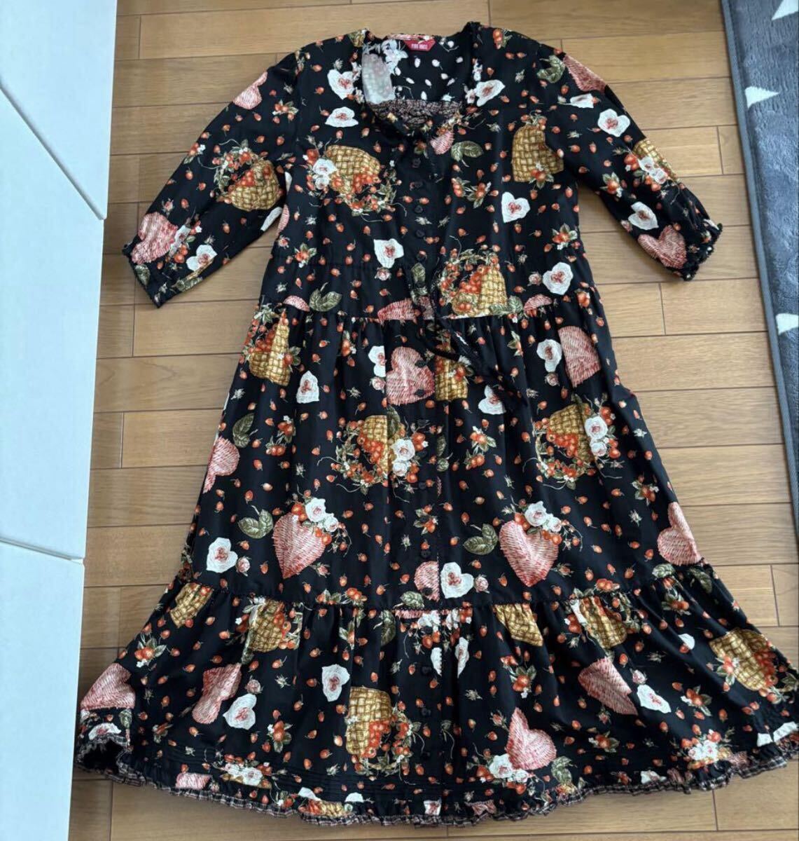 PINK HOUSEのとっても可愛くて豪華な柄のワンピースです。色はブラックです。