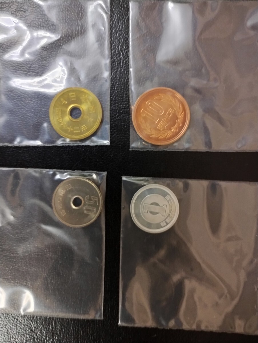 昭和62年 特年の1円 、5円 、10円、50円の4種ミントセットから取り出し品となります。