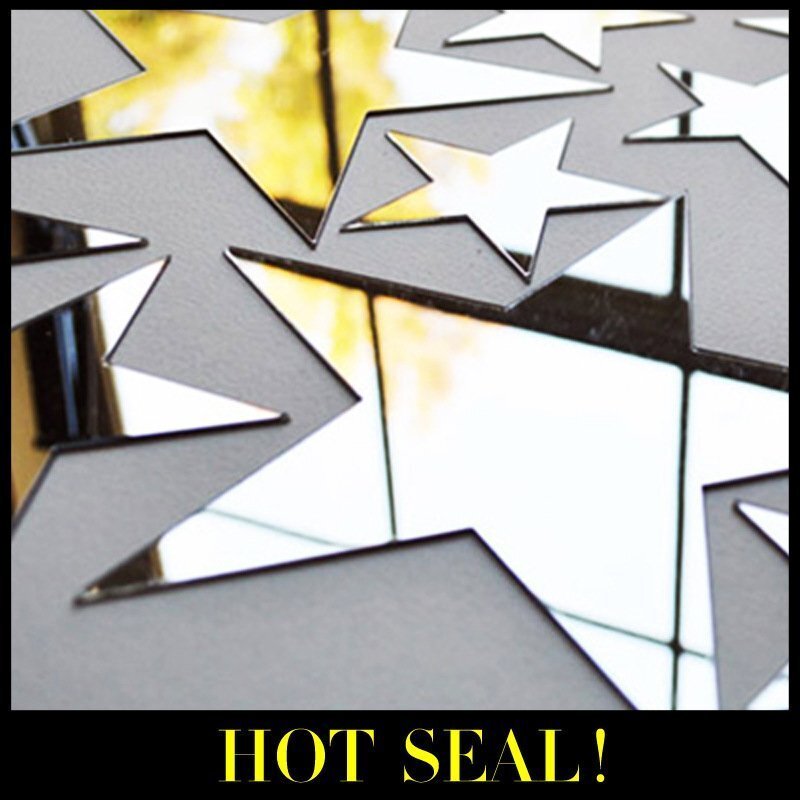 光る!ミラーステッカー 【星アソート/鏡面シルバー】 夜光 蓄光 壁紙シール リビング 寝室 子供部屋 ウォールデコ 模様替え