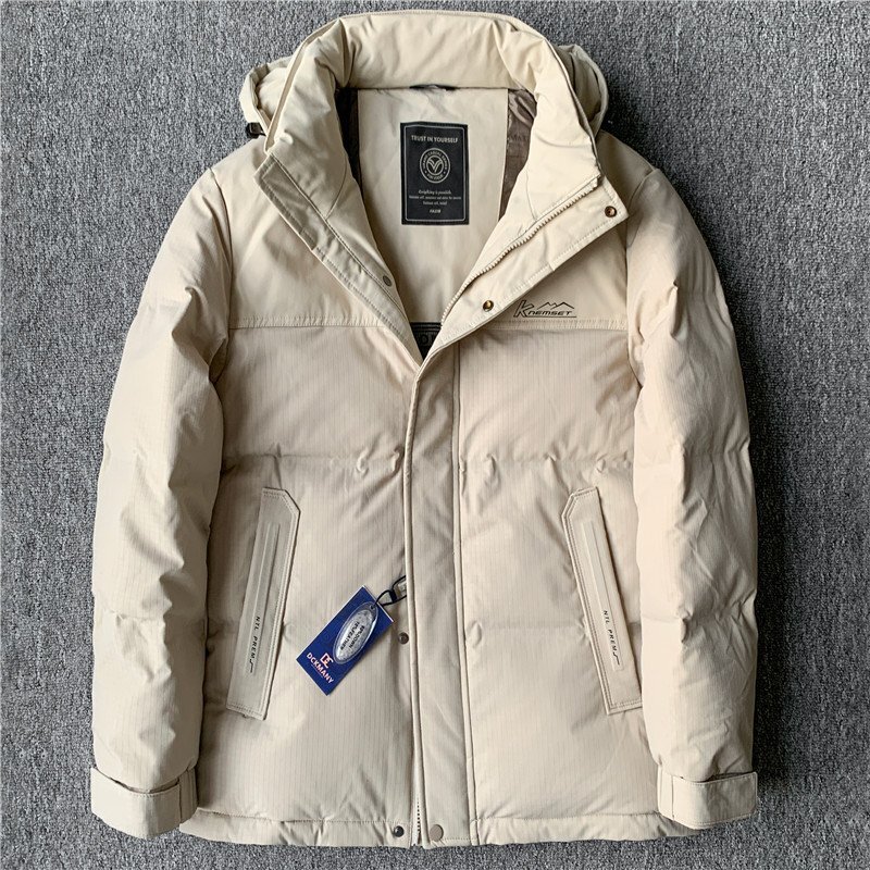 新品 DCKMANY ダウンジャケット スタンドカラー フード取り外し可能 防風 撥水 厚手 冬服 保温 メンズ ダウンアウター ベージュ E507-3XL