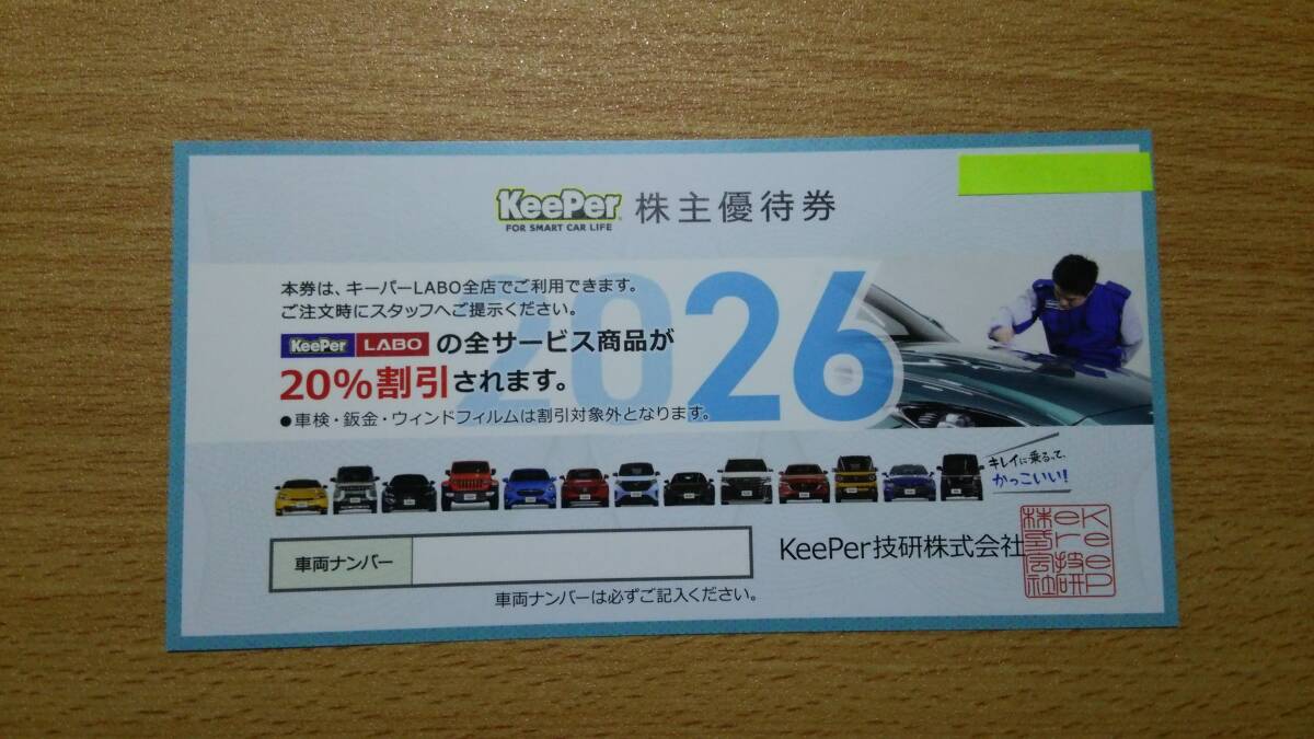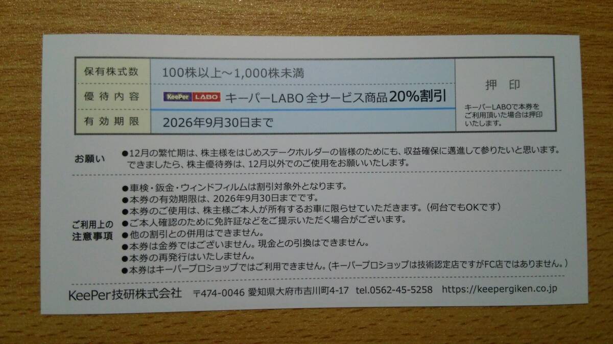 KeePer技研(株)株主優待券【キーパー LABO サービス利用割引券 他 特に車購入予定の方にお勧めです】