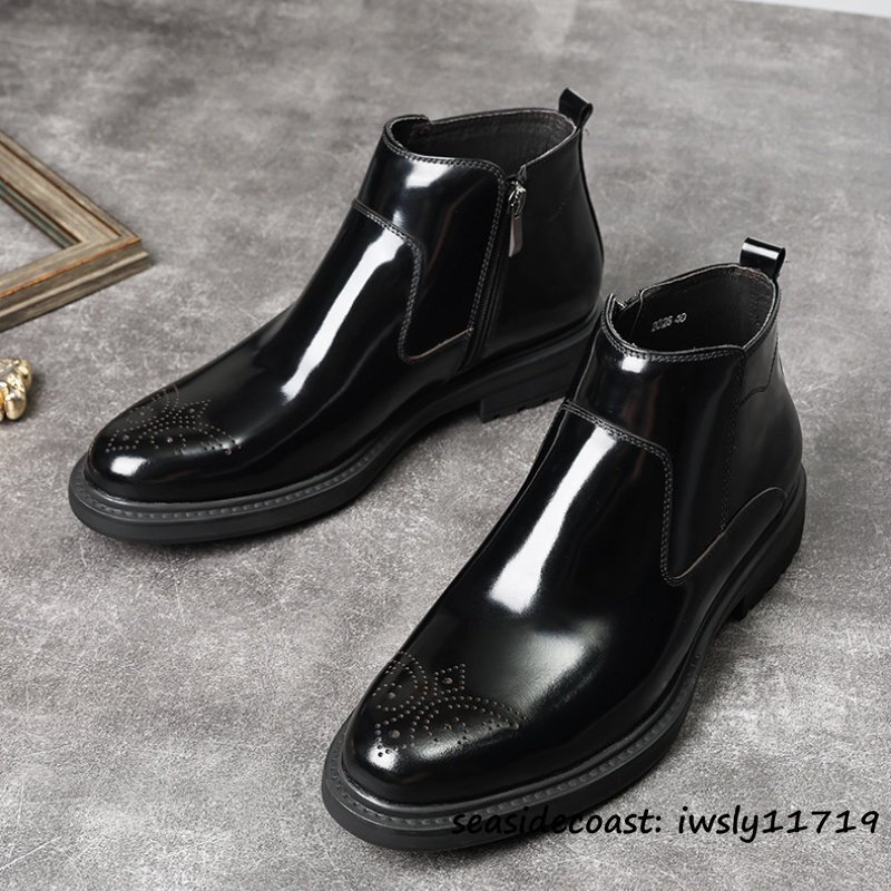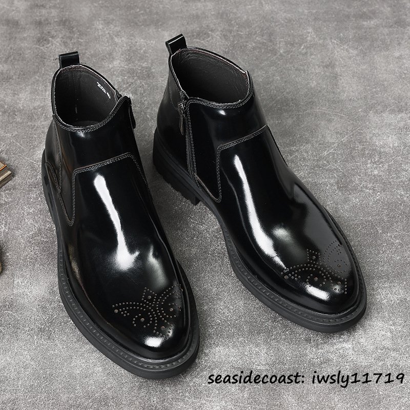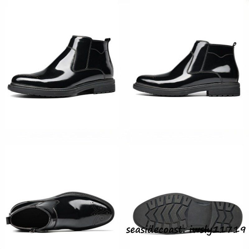 定価12万超★ショートブーツ メンズ マーティンブーツ 本革 レザーブーツ 職人手作り 彫り 牛革 ビジネスシューズ 革靴 ブラック 24.5cm