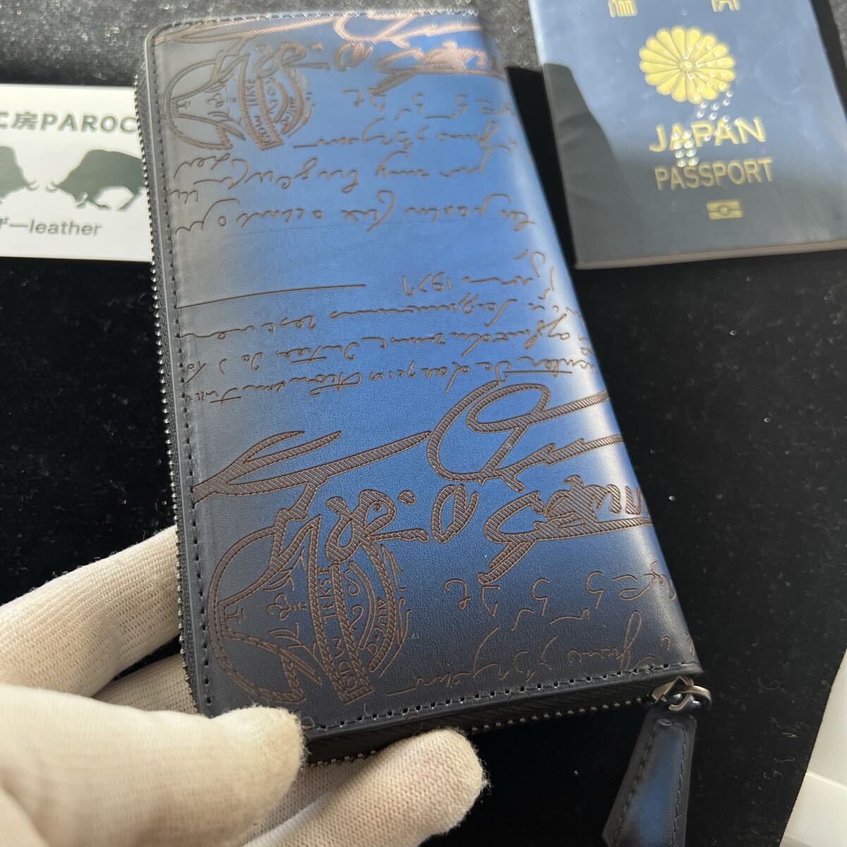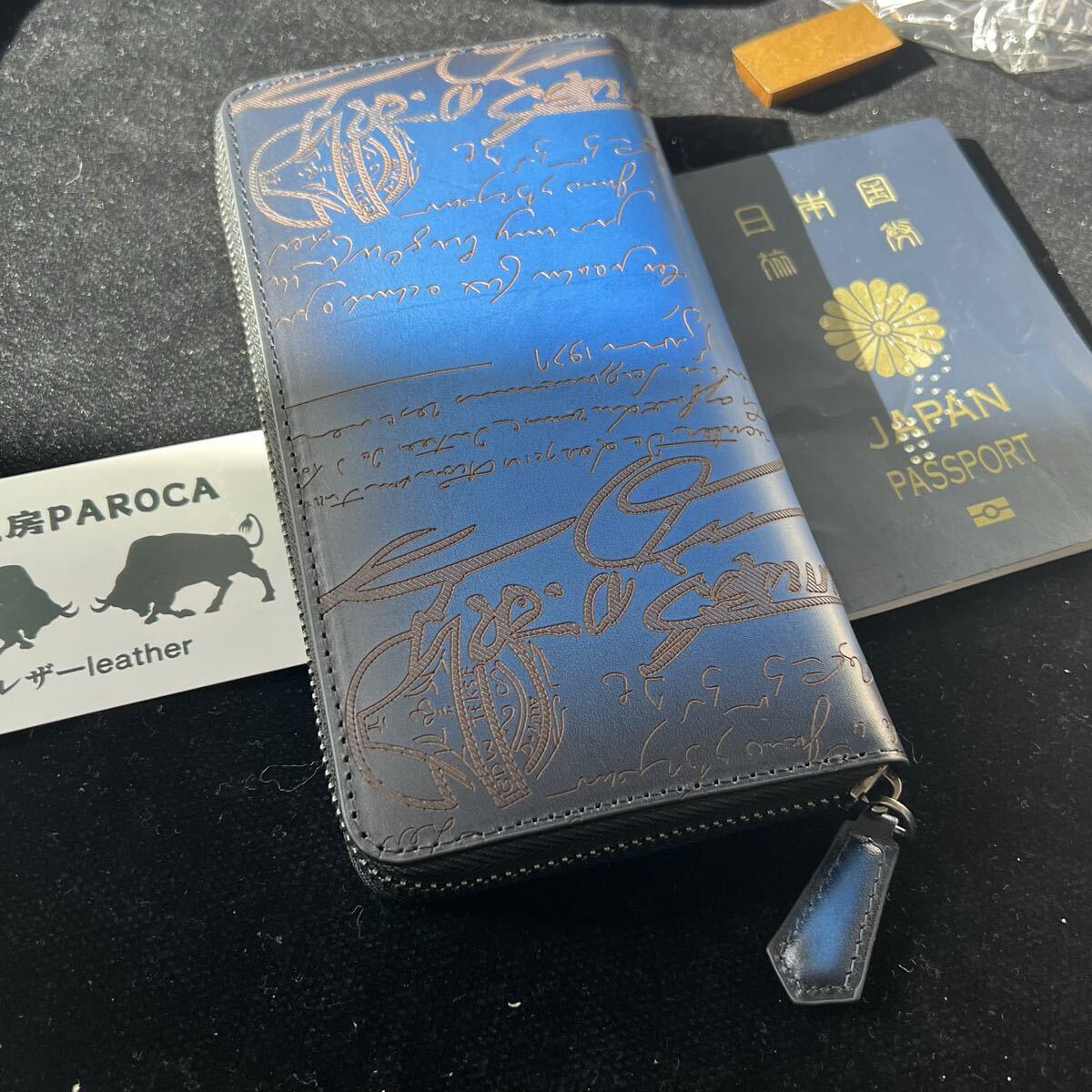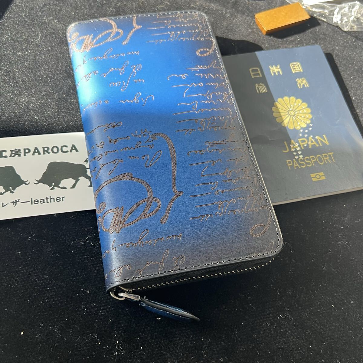 職人が一つ一つの工程にこだわり作り上げた牛革長財布です。手作業で何度も染料を塗り込んだ。一番こだわりの工程はカリグラフィーの彫り込みと革の着色です。使うほどに色合いが増し手に馴染む素材です、使えば使うほど手になじみ、味わいが増していきます。丈夫で風合いが良いです。吸湿性、放湿性、保温性に優れています。