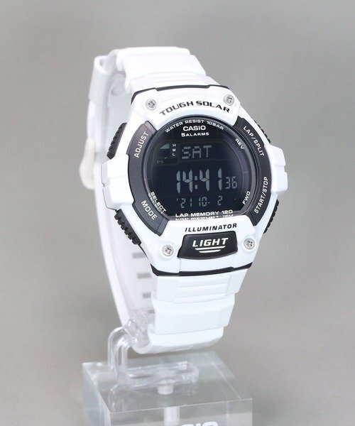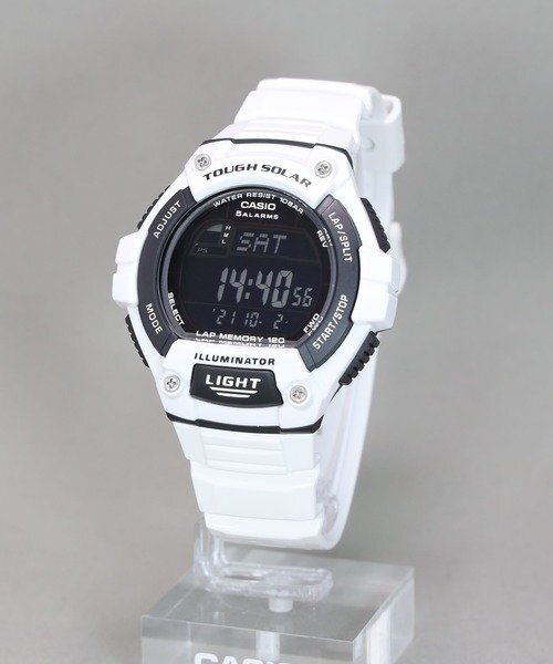 カシオ[CASIO] 1974年、機械式からクオーツ式へと切り替わる技術変革期に時計事業へ進出。1983年、カシオ計算機より「壊れない腕時計」としてG-SHOCK誕生。外殻から独立した内部機構とポリウレタン製の衝撃吸収材等によりアイスホッケーのパック代わりにしても壊れないほどの頑丈さを誇る。1984年 データバンクを発売多機能、高気圧防水、他に気圧計や水深測定器、電波時計、太陽電池等様々な先端技術を盛り込んだ製品が多数発表。腕時計の更なる可能性を追求し続け世界中で愛されるトップメーカーである。 ケース材質:樹脂 サイズ約:縦51.7×横49.8mm×厚:14.6mm 重:46g ベルト材質:樹脂 カラー:ホワイト ムーブメントソーラークォーツ 機能風防:樹脂ガラス ワールドタイム:世界48 都市(31タイムゾーン、サマータイム設定機能付き)+ UTC(協定世界時)の時刻表示 ストップウオッチ(1/100 秒(10 時間未満)/1 秒(10時間以上)、100 時間計、ラップ/ スプリット付き)、LAP データを最大120 本メモリー(ラップカウンター001 ~ 999)、計測ログデータを最大60 本メモリー(データ番号、計測開始月・日・時・分、ラップ/ スプリットタイム、ラップ番号、最高ラップ表示) タイマー:最大2 本の時間指定が可能なインターバル計測用のタイマー(セット単位:5 秒、最大セット:99分55 秒、1 秒単位で計測、リピート(1 ~ 10 回まで設定可能)機能付き) 時刻アラーム5 本(1本のみスヌーズ機能付き)・時報 LEDライト(残照機能、残照時間切替(1.5秒/3秒)付き) フルオートカレンダー 操作音ON/OFF切替機能 パワーセービング機能(暗所では一定時間が経過すると表示を消して節電します) バッテリーインジケーター表示 12/24時間制表示切替 防水機能防水性:10気圧防水 付属品CASIO純正BOX 保証書 取扱説明書 ※説明書・保証書に関して入荷時期により仕様、内容が一部異なる場合がございます。予めご了承をお願い致します。また、ブランドにより説明書兼保証書が付属する場合がございます。予めご了承をお願い致します。 |