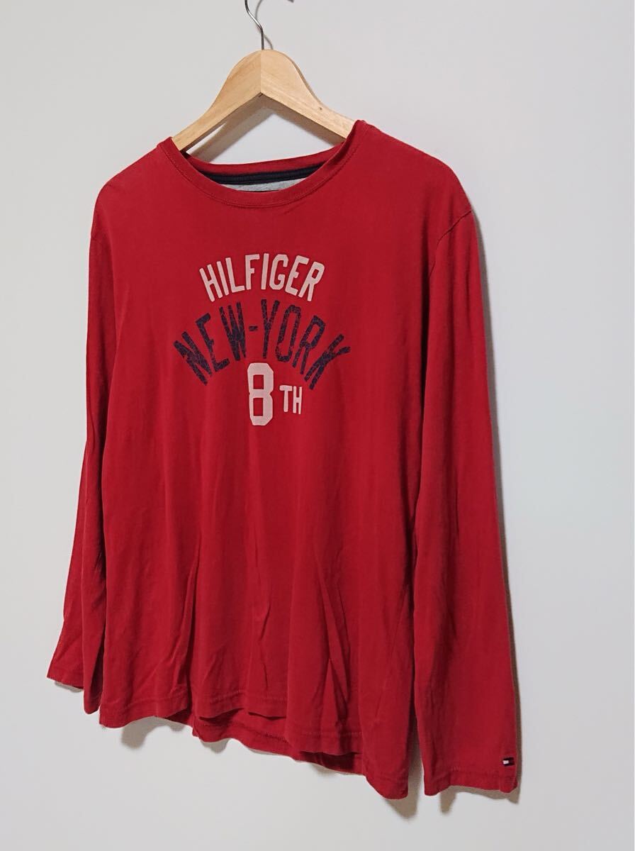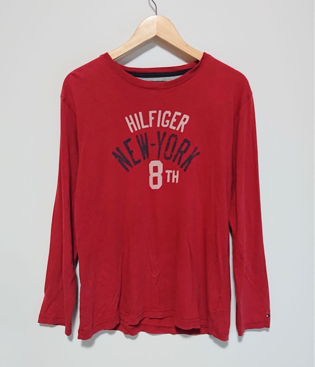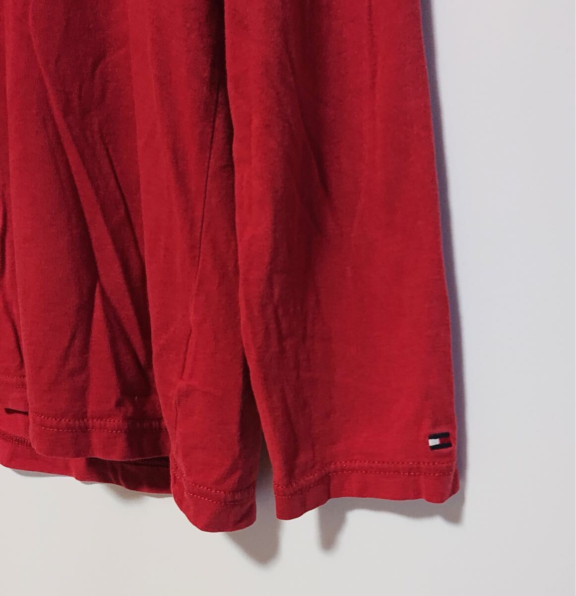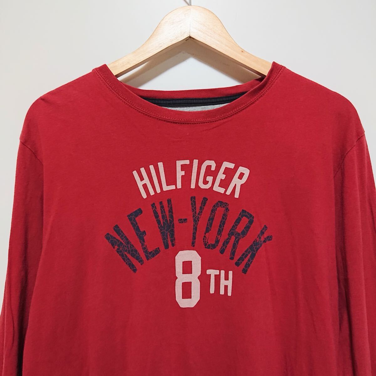 h4636gg TOMMY HILFIGER(トミーヒルフィガー) サイズM 長袖Tシャツ ロンT レッド 赤 メンズ カジュアル プリント シンプル 古着好き 綿100%