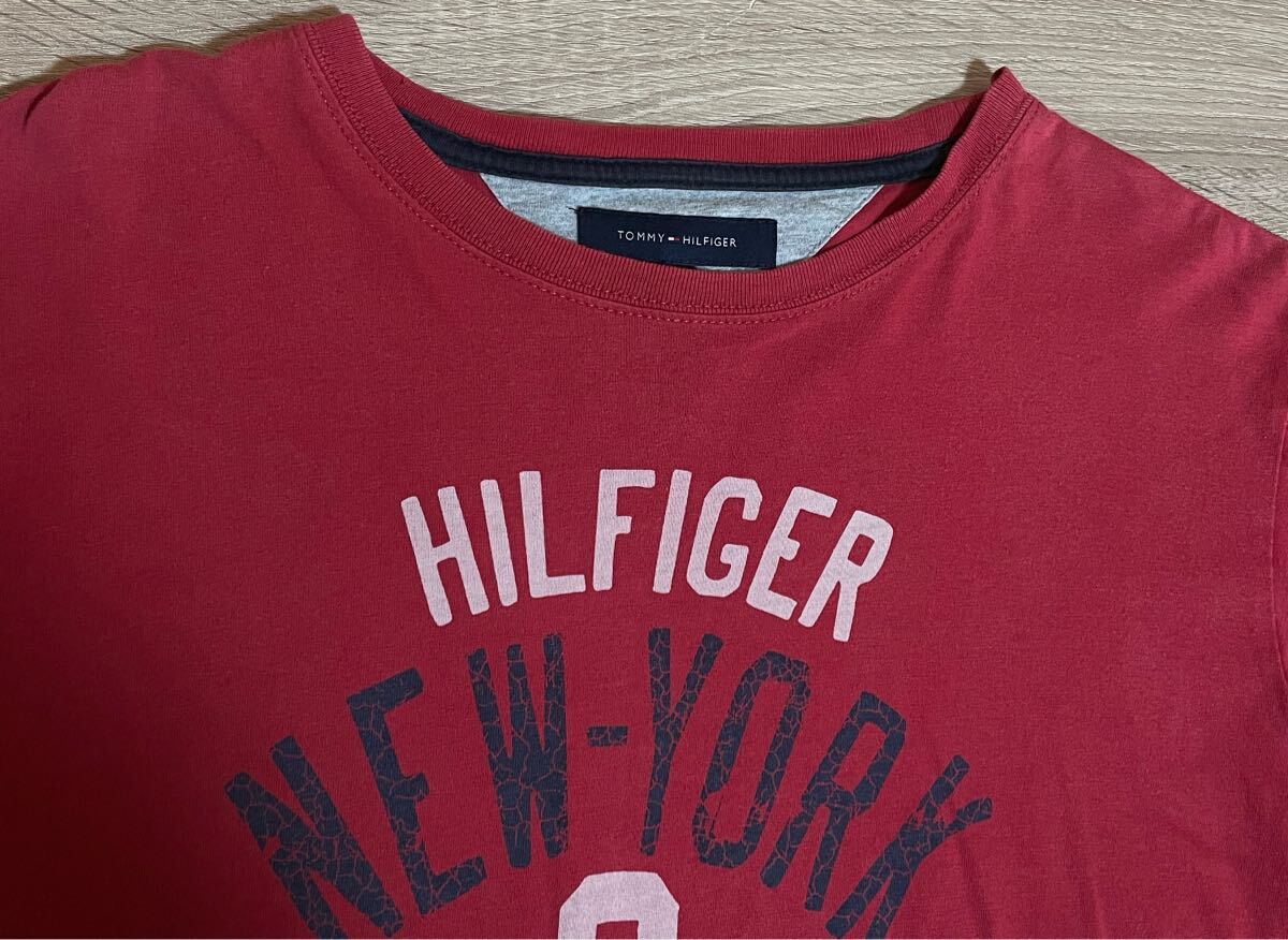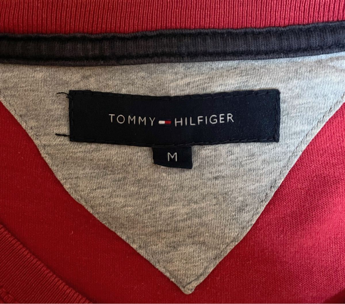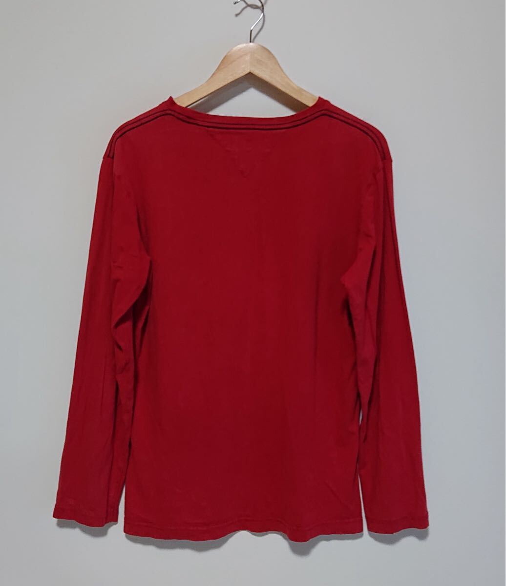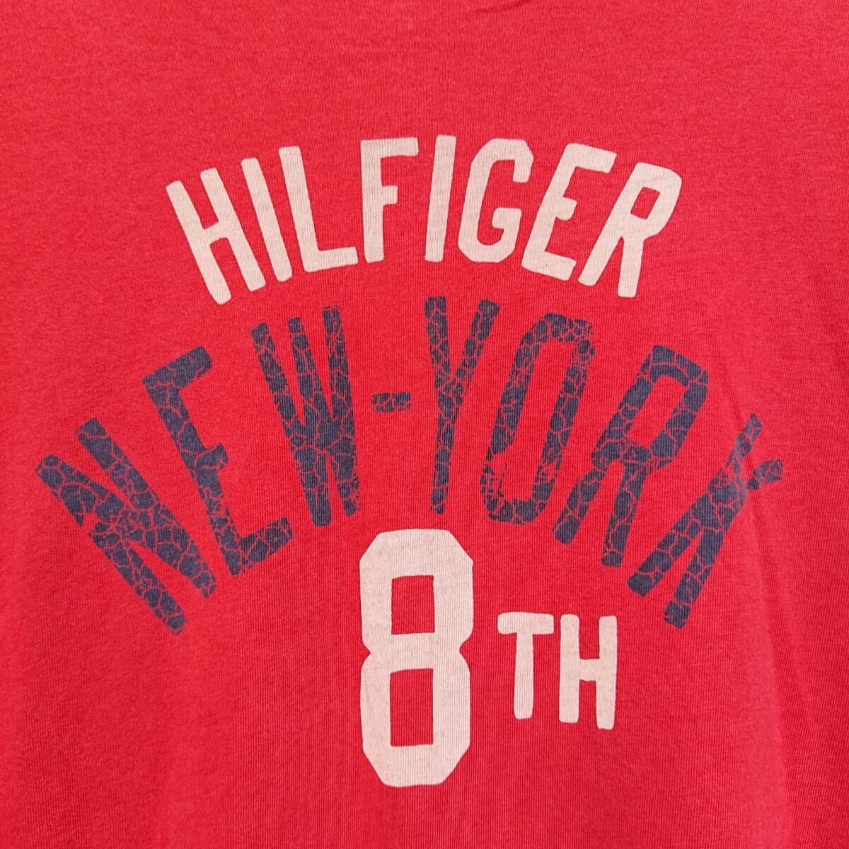 h4636gg TOMMY HILFIGER(トミーヒルフィガー) サイズM 長袖Tシャツ ロンT レッド 赤 メンズ カジュアル プリント シンプル 古着好き 綿100%
