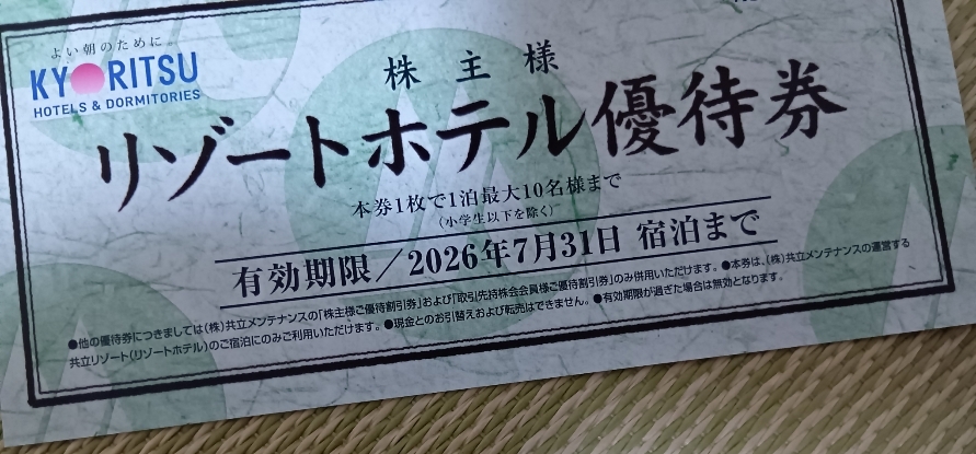 ②7/31 共立メンテナンス リゾートホテル優待券 割引券 クーポン 旅行 観光 チケット 宿泊 ラビスタ 温泉 ドーミーイン不可 株主 KYORITSU