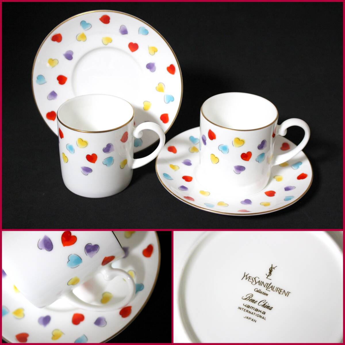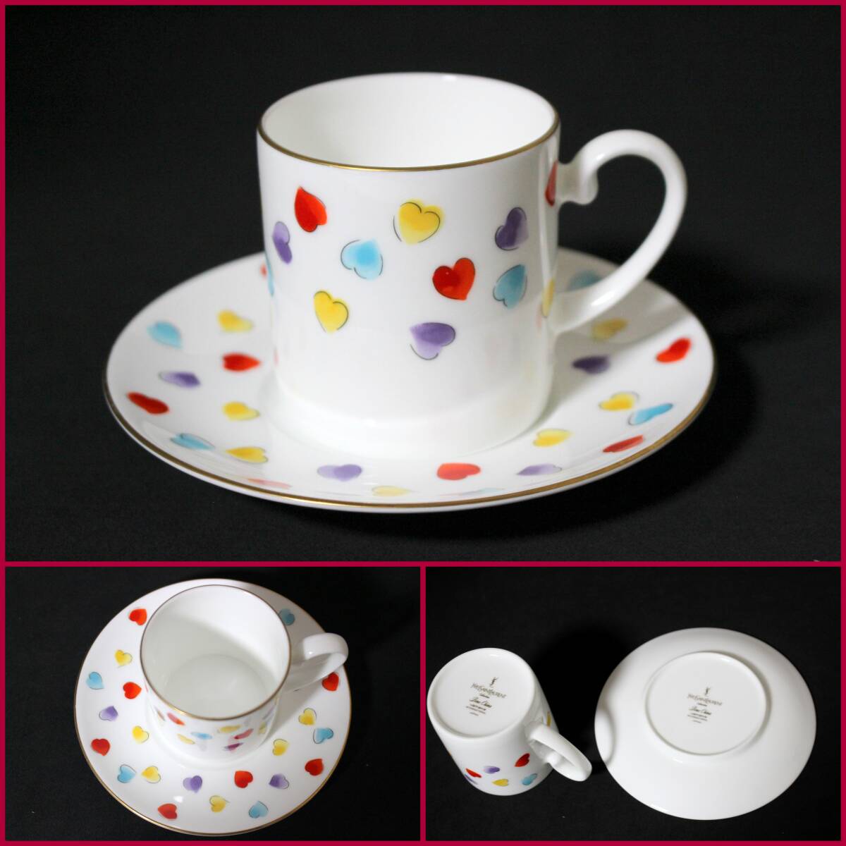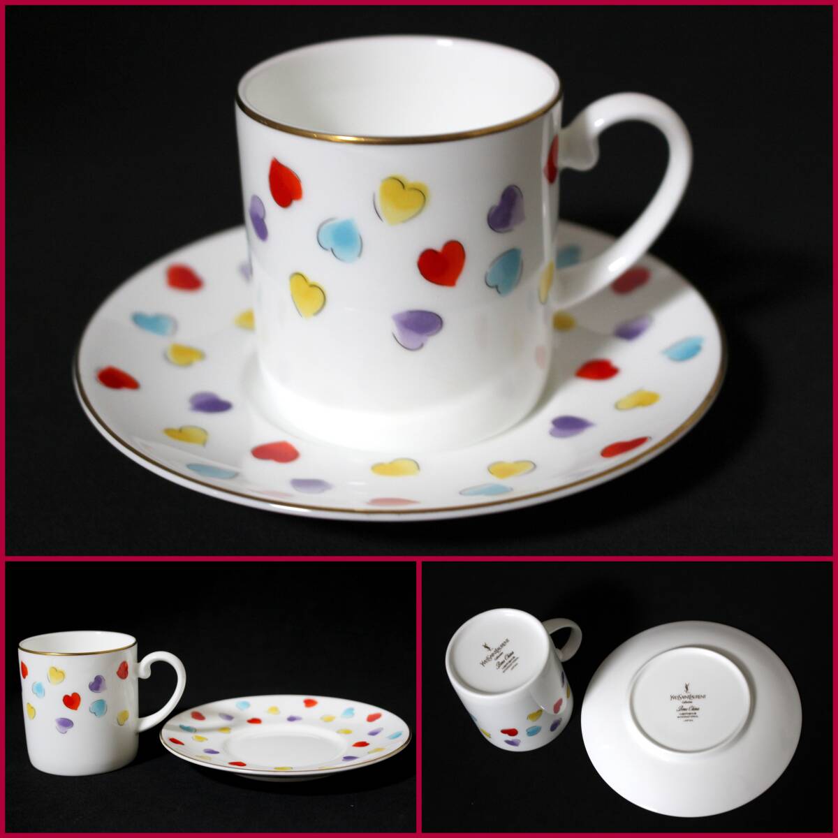 YVES SAINT LAURENT/イヴ サンローラン】『カラフルハート・コーヒーカップ&ソーサー2客』《美品》日本製/金彩/YSL/キュート/レア/BVT4454