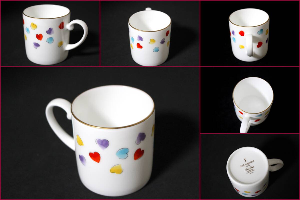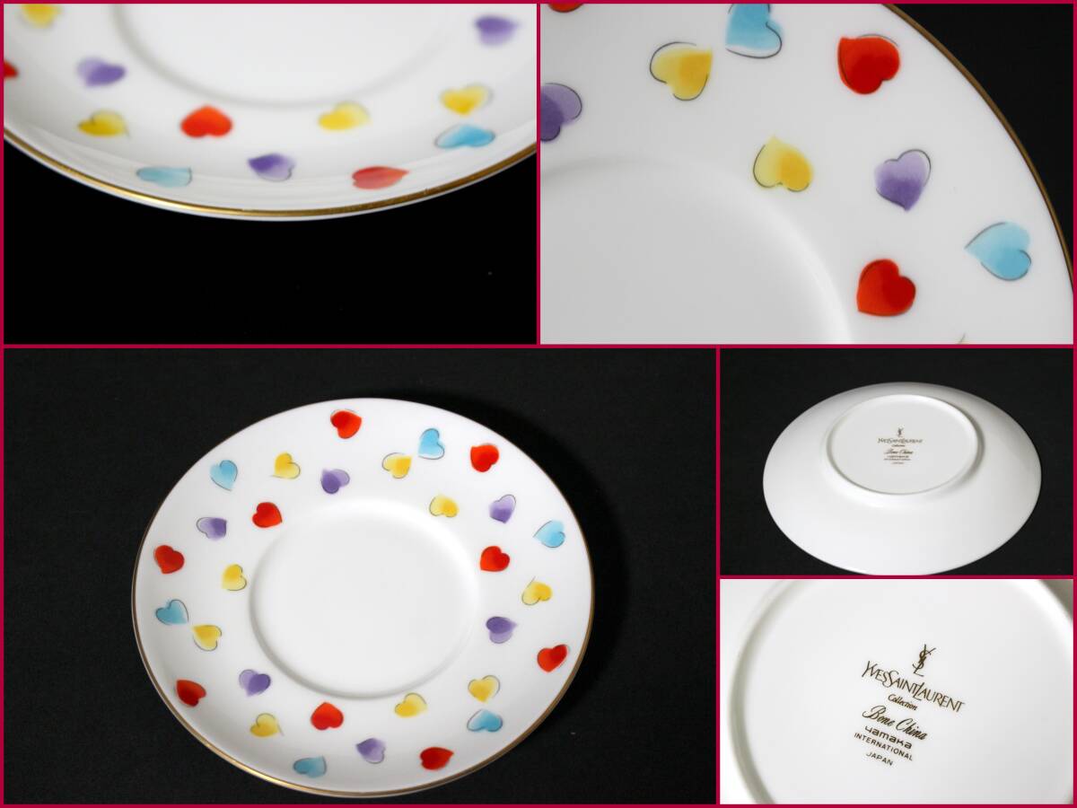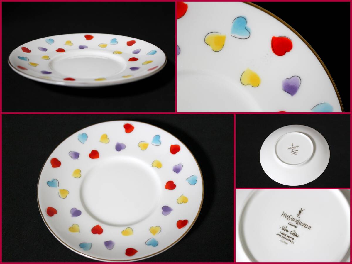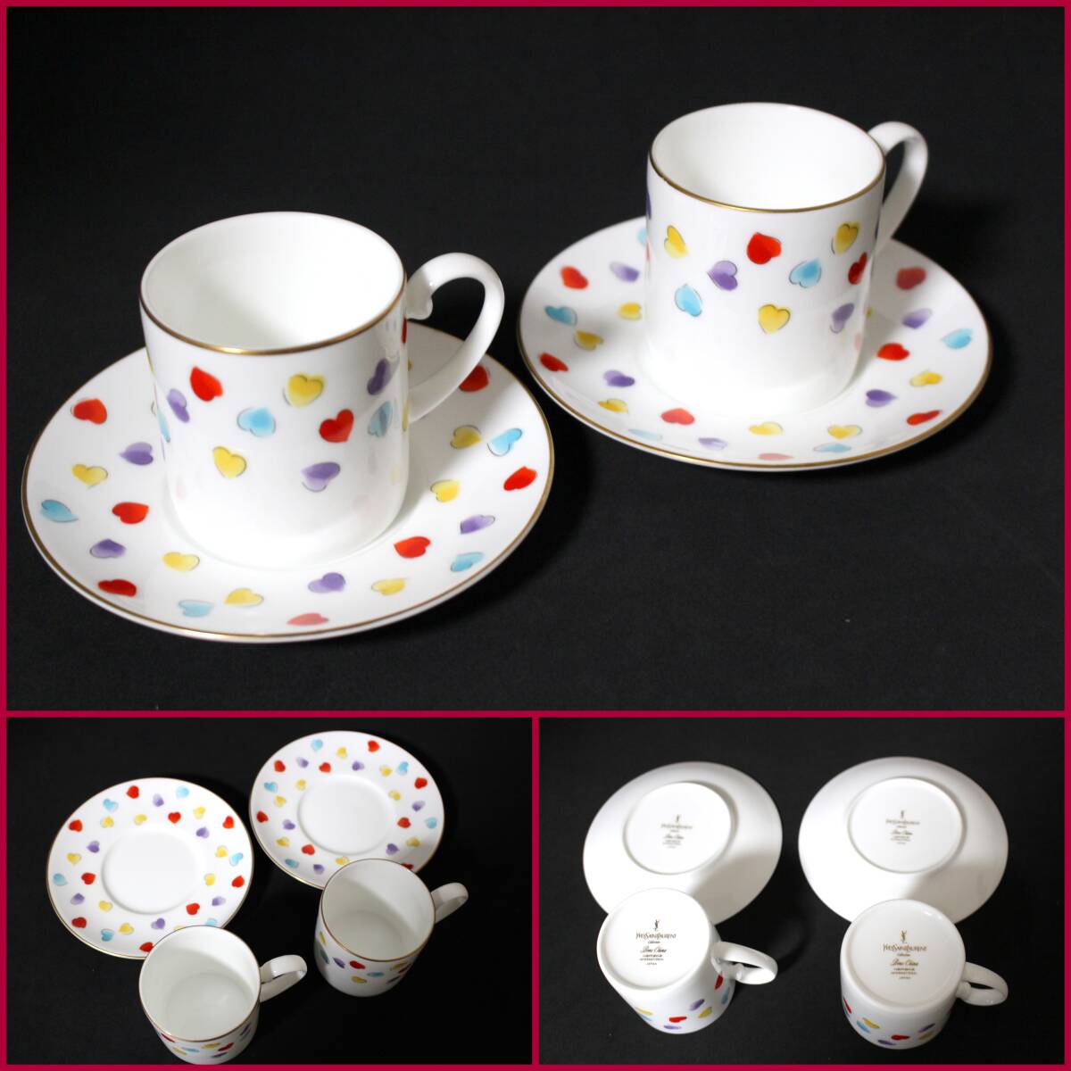 YVES SAINT LAURENT/イヴ サンローラン】『カラフルハート・コーヒーカップ&ソーサー2客』《美品》日本製/金彩/YSL/キュート/レア/BVT4454