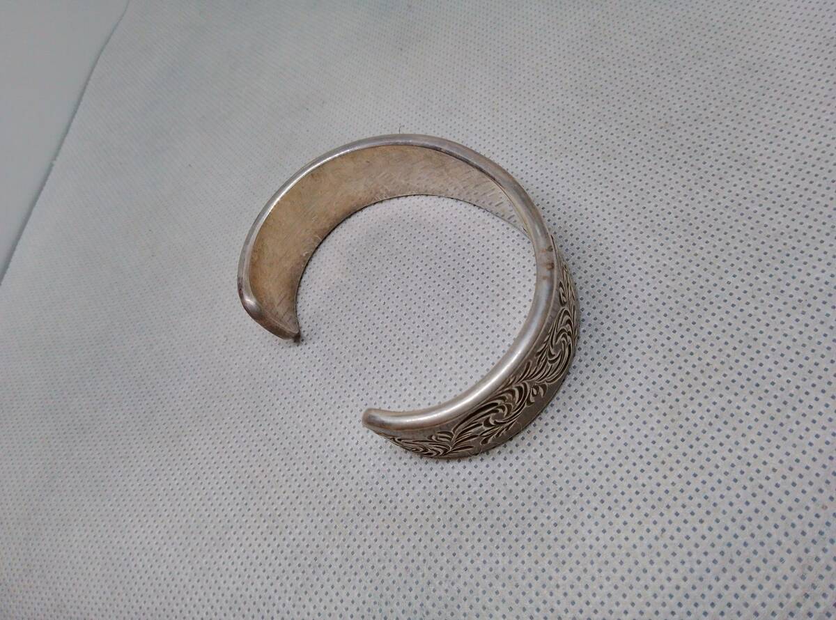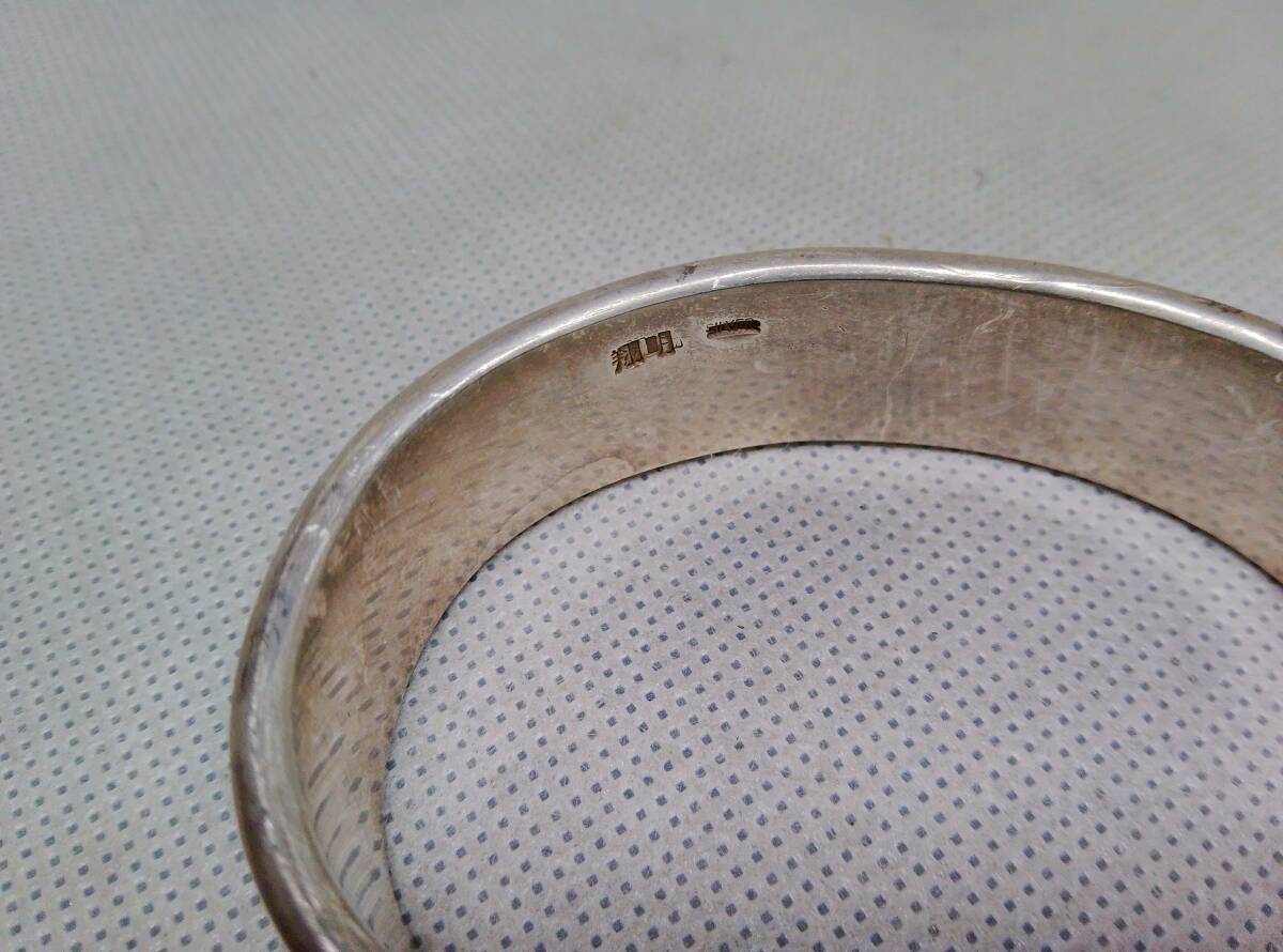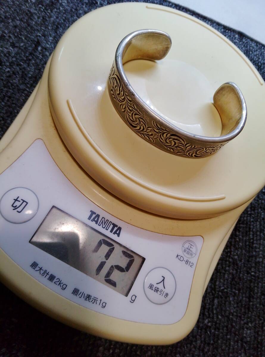 ノーチラスアートジュエリーのバングルです。肉厚で72gもあります。メンズ標準Mサイズです。経年の渋みございますが全体的に良い状態です。ネコポス簡易梱包です。