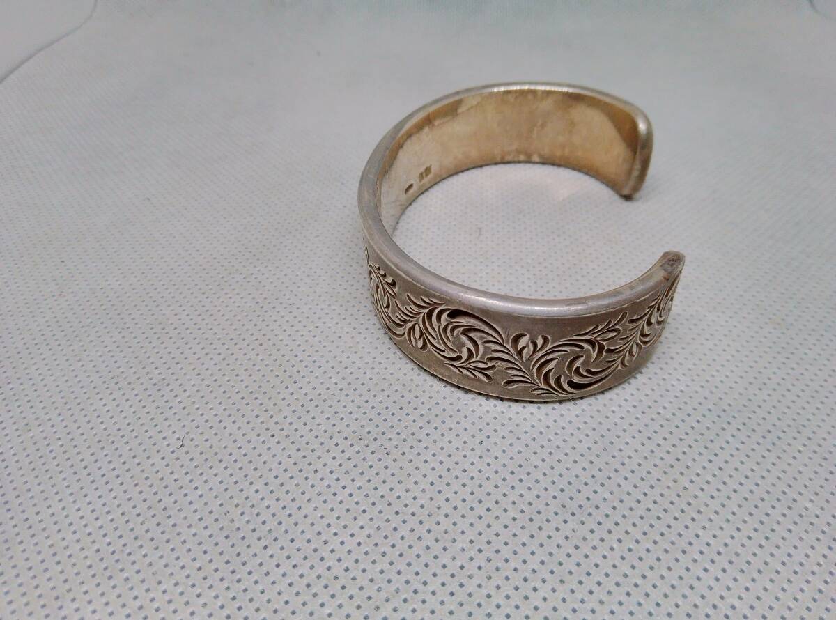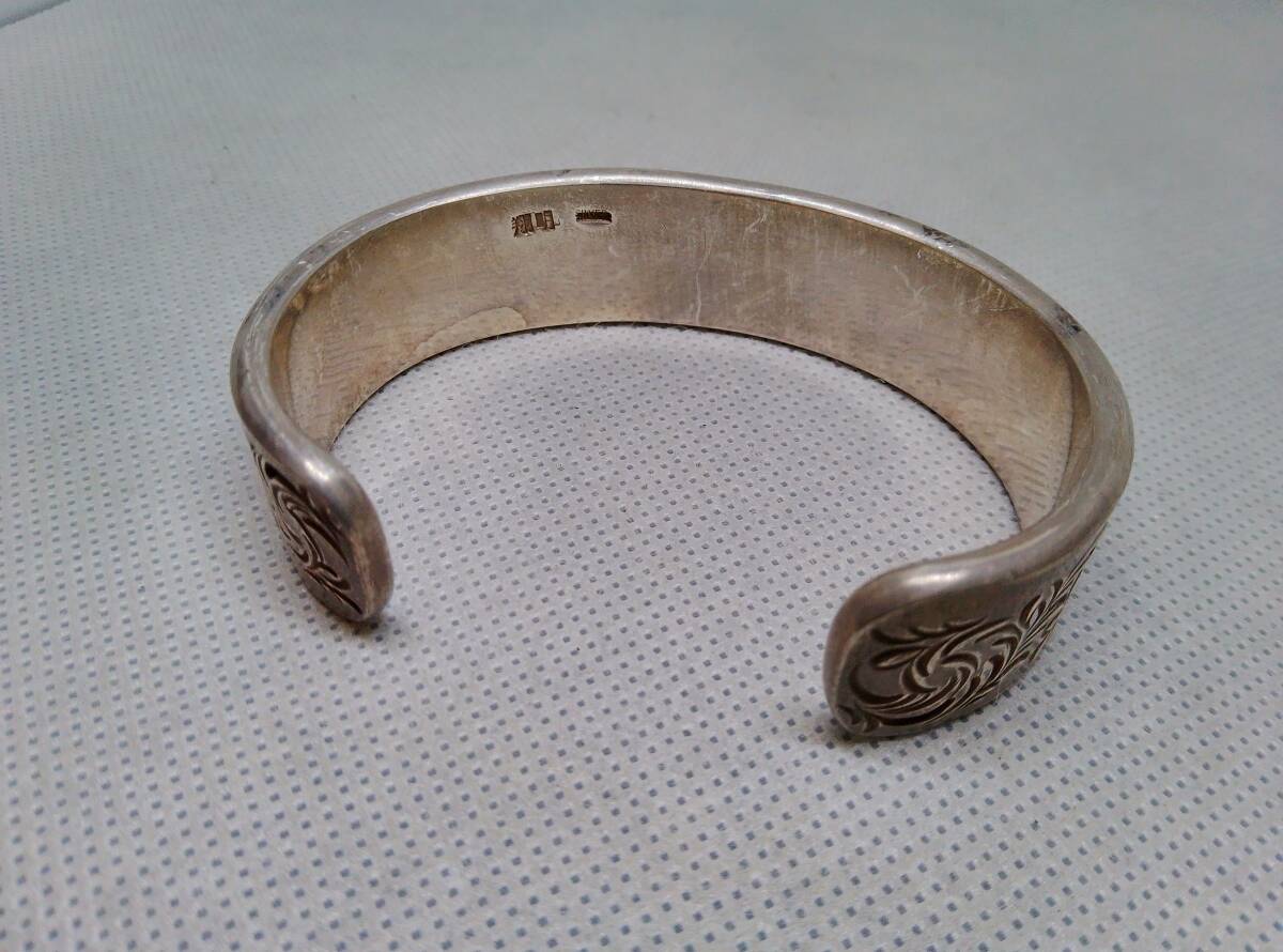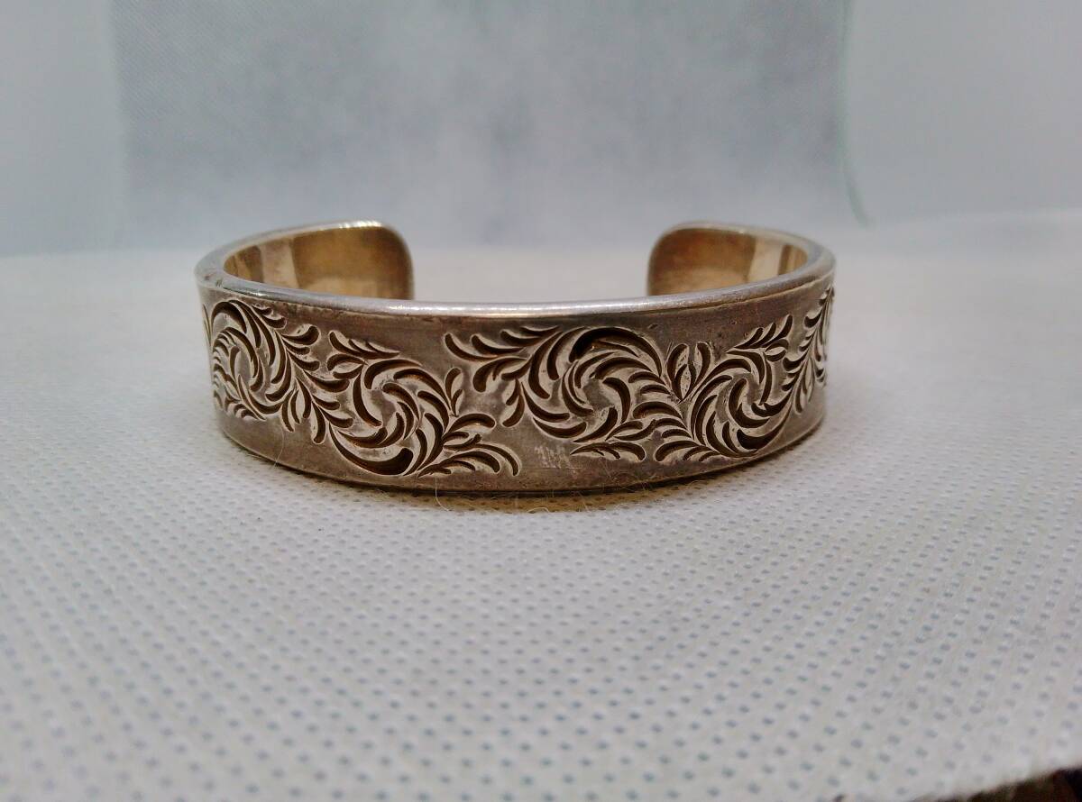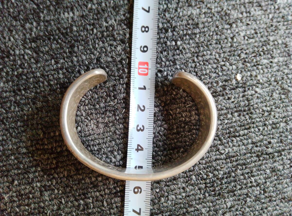 ノーチラスアートジュエリーのバングルです。肉厚で72gもあります。メンズ標準Mサイズです。経年の渋みございますが全体的に良い状態です。ネコポス簡易梱包です。
