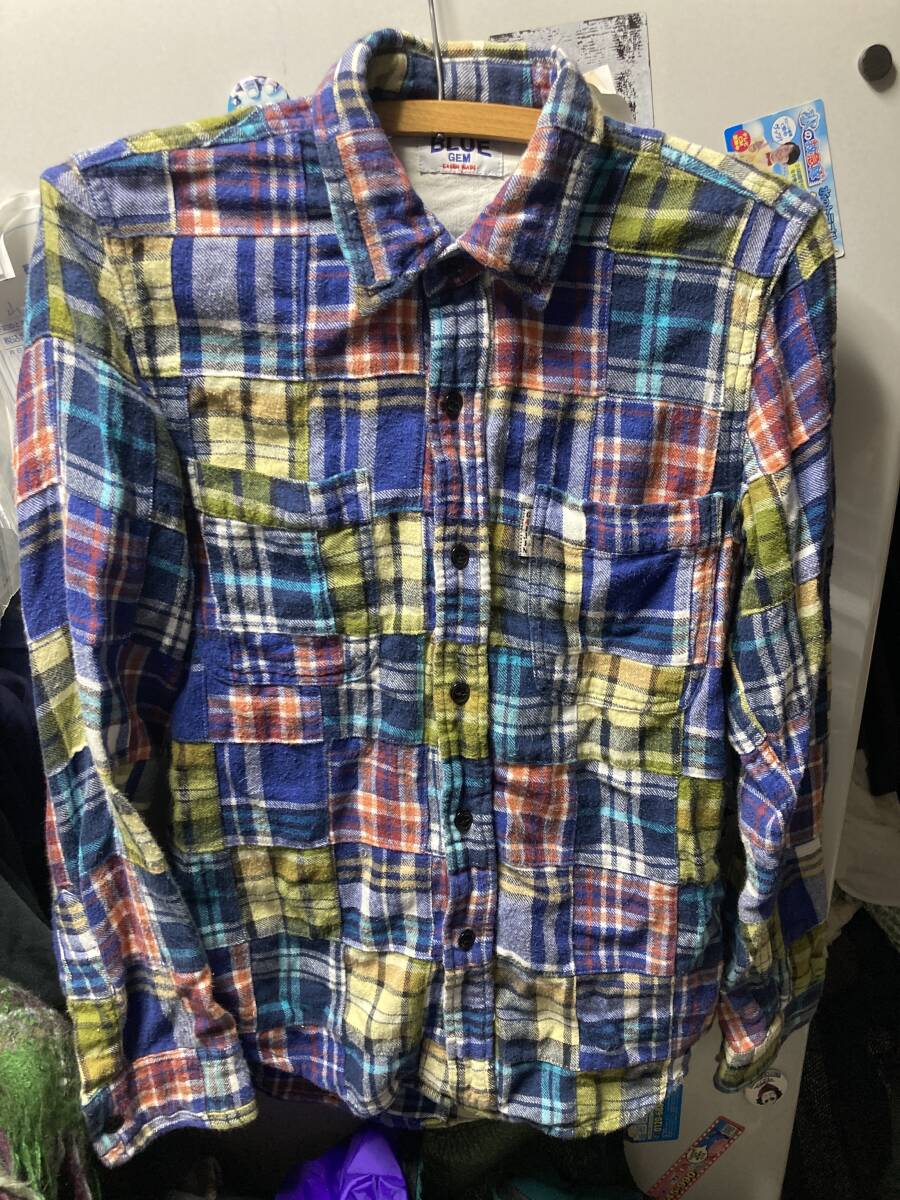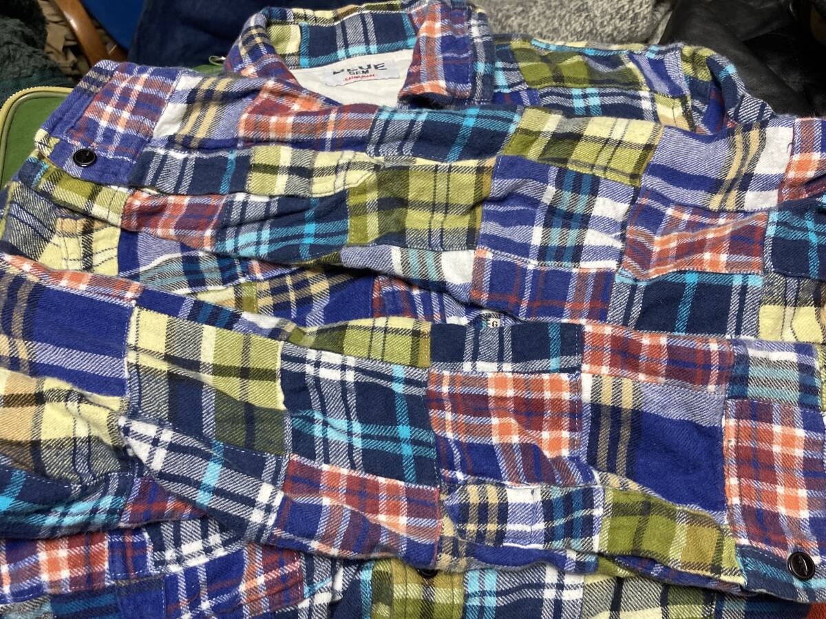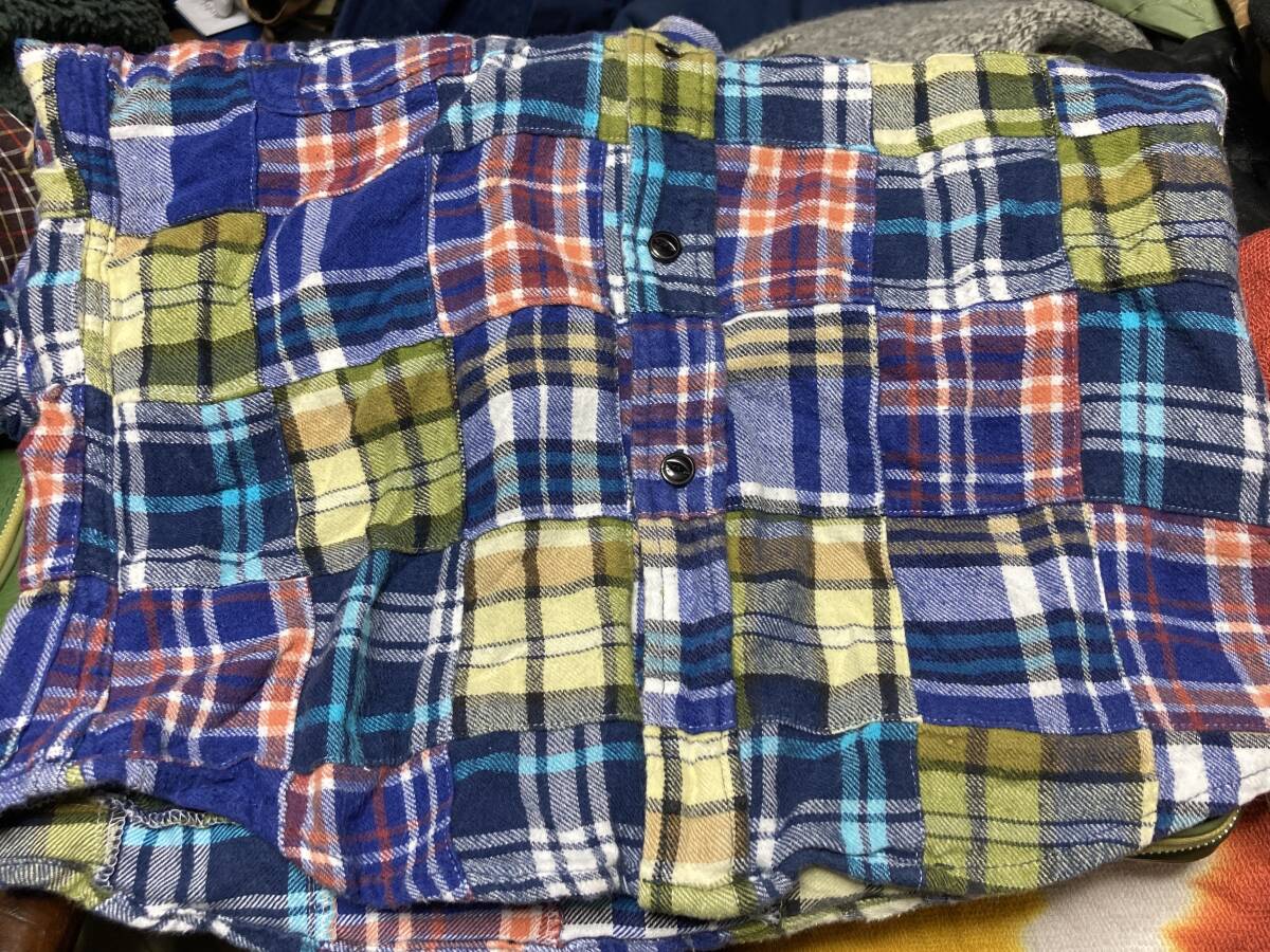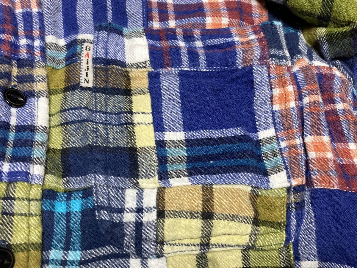 2506ハリランチHRMハリウッド ランチ マーケット聖林ガイジンGAIJIN MADE猫目ボタンCRAZYパッチワーク織り チェック ネルシャツⅠマルチ