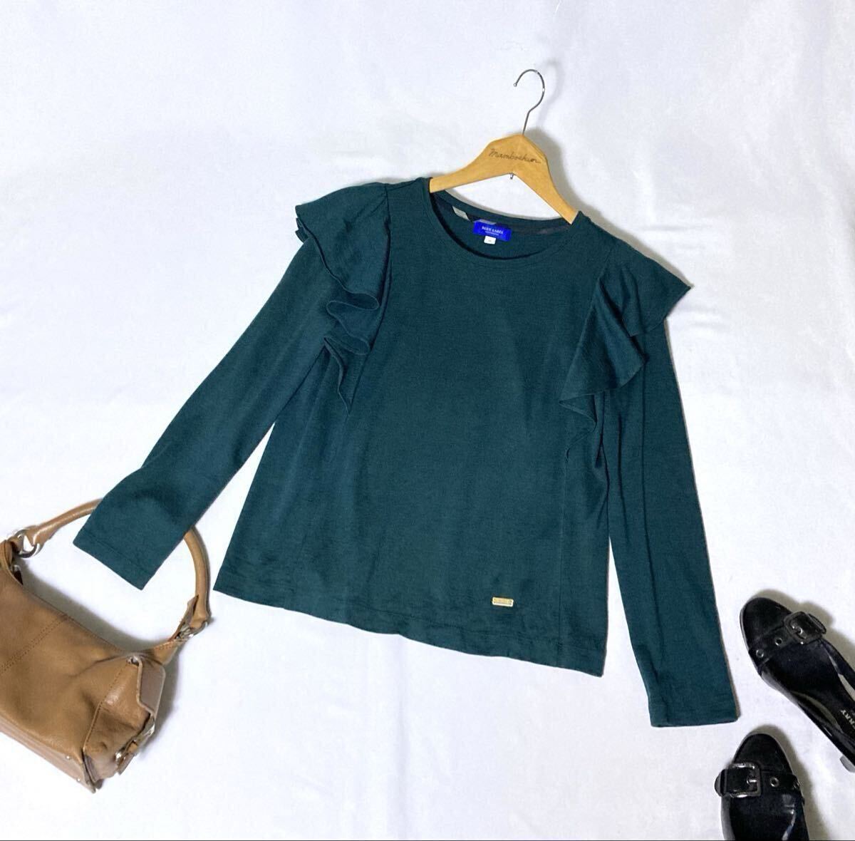 美品 ブルーレーベルクレストブリッジ 肩のフリルが可愛いウールのニット 38 送料230円♪