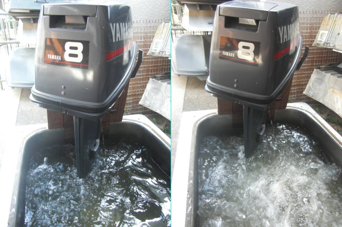 この船外機はしっかり整備をしております(可動部のグリス充填、ギヤオイル交換等)ので今後もまだまだ活躍できるものと思います。