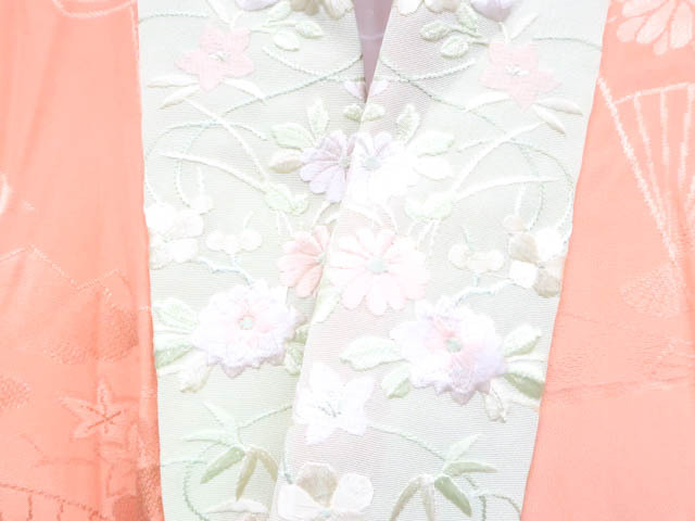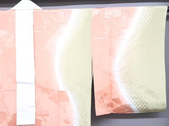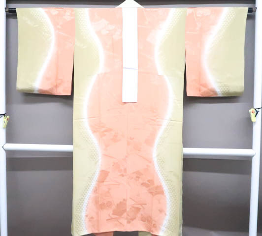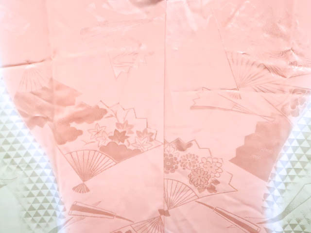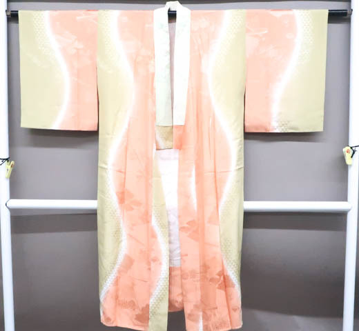 リサイクル商品ではございますが、大変良い状態のお品です。 地色は カーキ ピンクです。 1枚目の画像が近いお色かと思われます。 素材は正絹です。 |