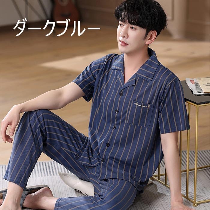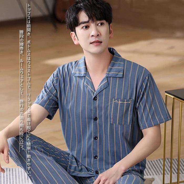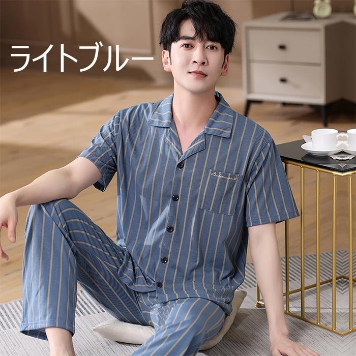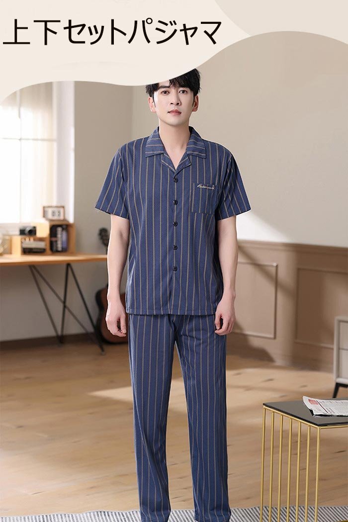 メンズ パジャマ 上下セット 半袖&長ズボン パジャマセット ルームウェア 部屋着 綿吸汗 通気 メンズ 上下 セット ☆2色/L~4XL選択/1点