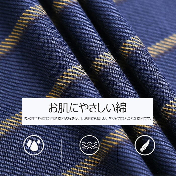柔らかい着心地の快適なコットン生地で仕上げた前開きパジャマ上下セットです。