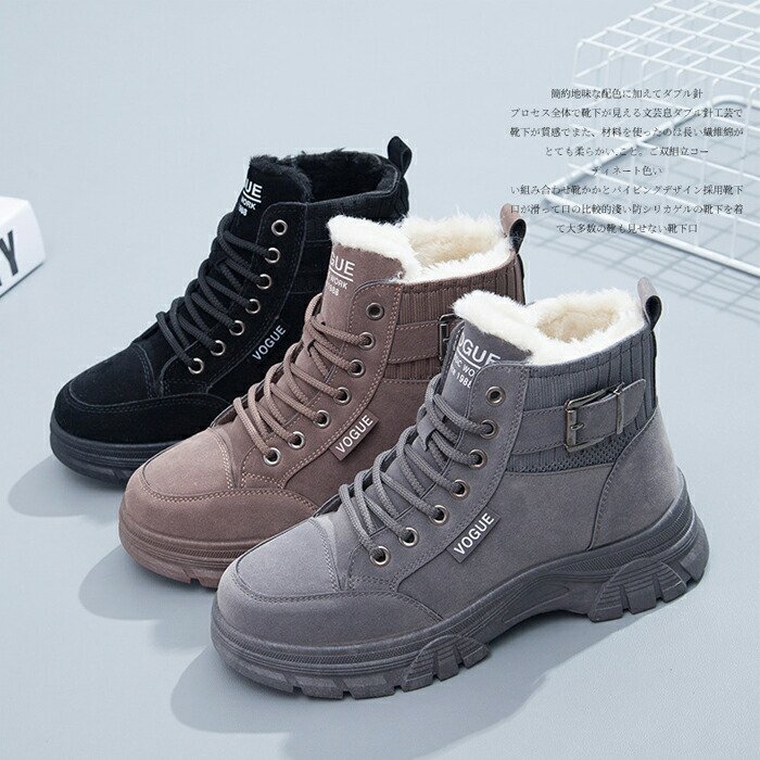 スノーブーツ ショートブーツ レディース 裏起毛 ボア 女性 ブーツ ショート レディース レースアップブーツ☆3色/35~40サイズ選択/1点