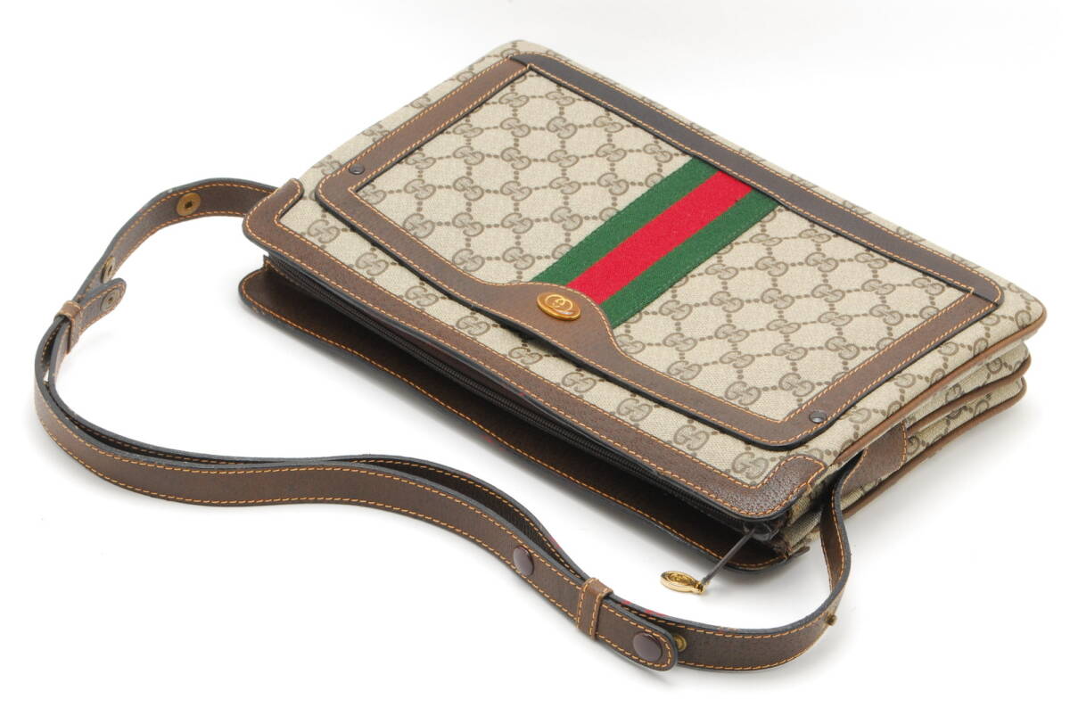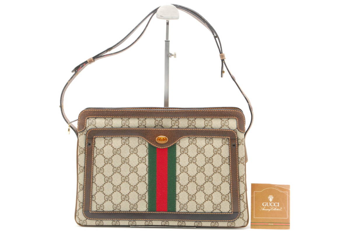 1円【極美品】GUCCI グッチ オールドグッチ ヴィンテージ GG シェリーライン ショルダーバッグ 2way PVC レザー ブラウン A0573