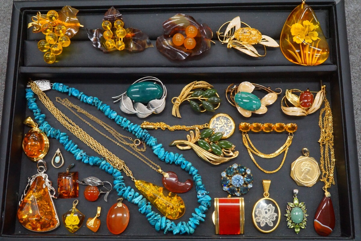C408 ジャンク含む 本べっ甲 天然石など ネックレス ペンダント ブローチ他 ヴィンテージ アクセサリー 大量 まとめて おまとめ まとめ売り