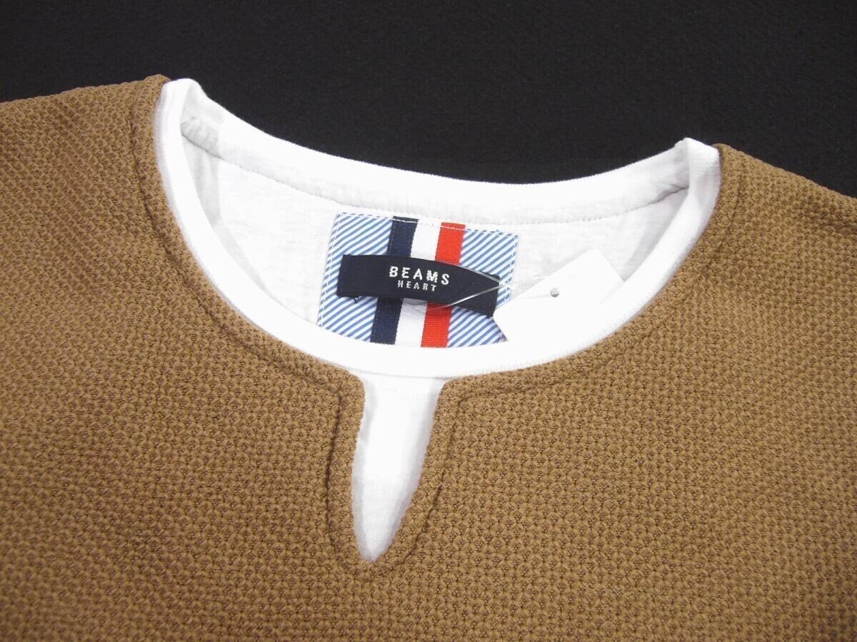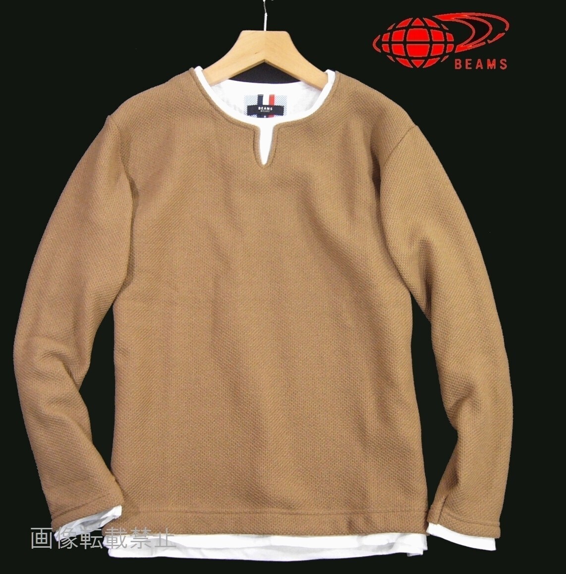 新品 ☆ ビームス 裏起毛 ワッフル 長袖 フェイクレイヤード L ベージュ ニットフリース BEAMS HEART メンズ