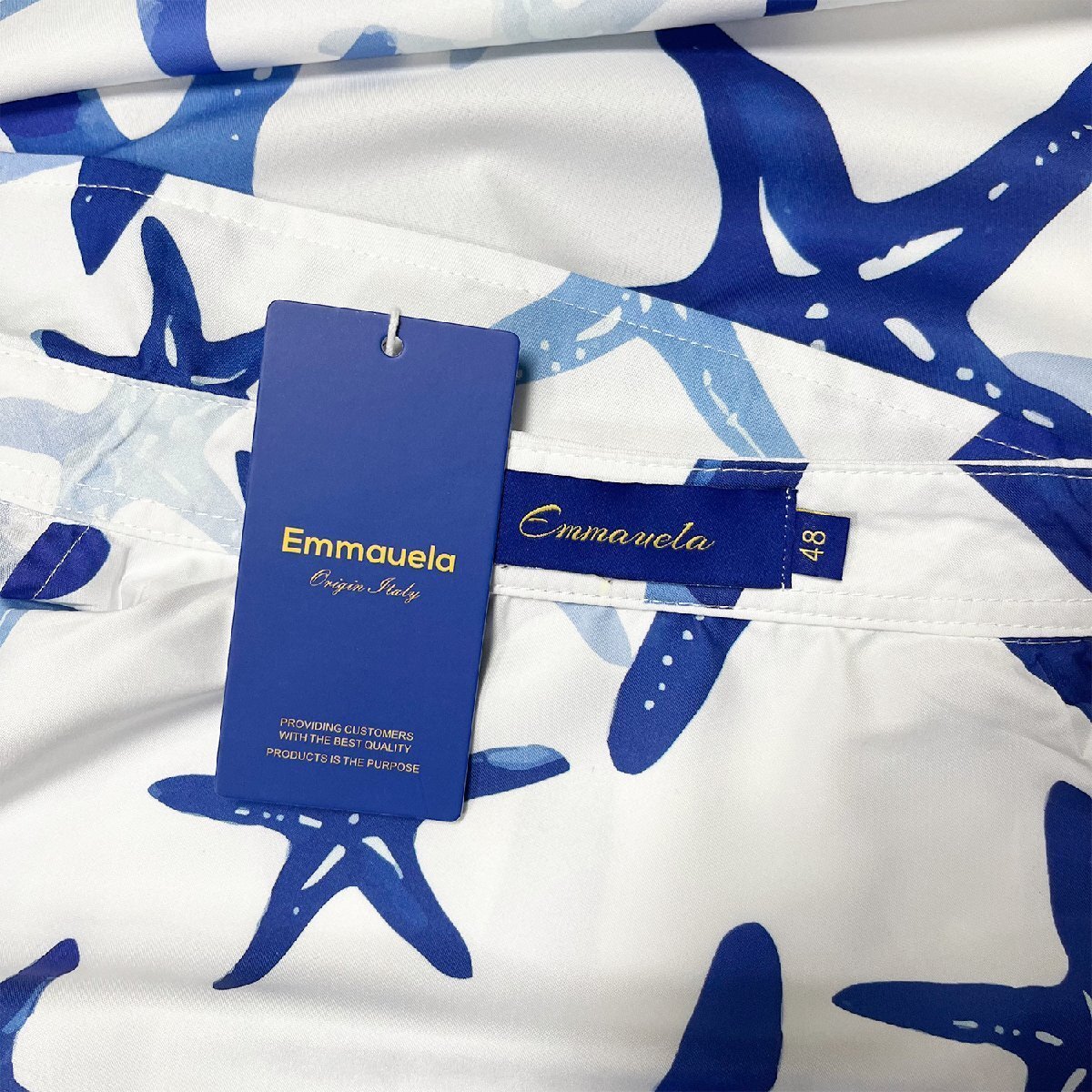 個性・アロハシャツ 定価2万◆Emmauela・イタリア・ミラノ発◆シルク混 清涼感 ヒトデ柄 総柄 カジュアル ハワイアン 海辺 ビーチ M/46