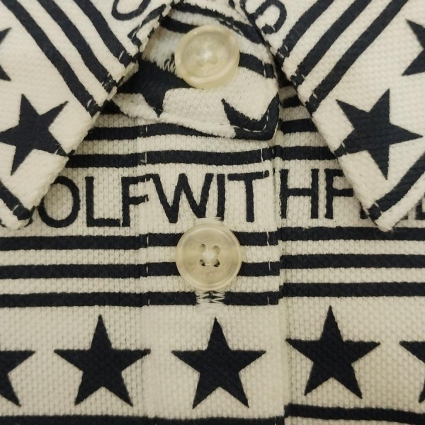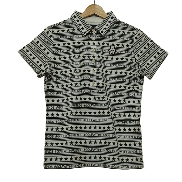 キャロウェイ CALLAWAY 半袖ポロシャツ サイズL - 白×ダークネイビー レディース ボーダー/スター(星)/クマ 美品 トップス