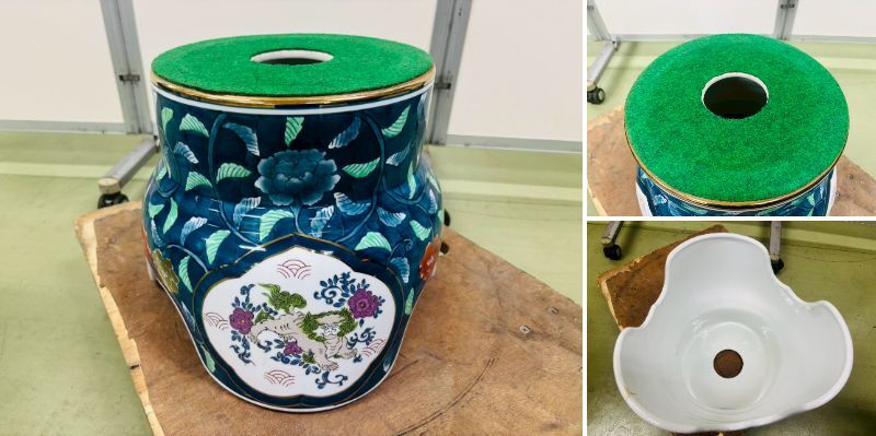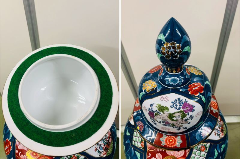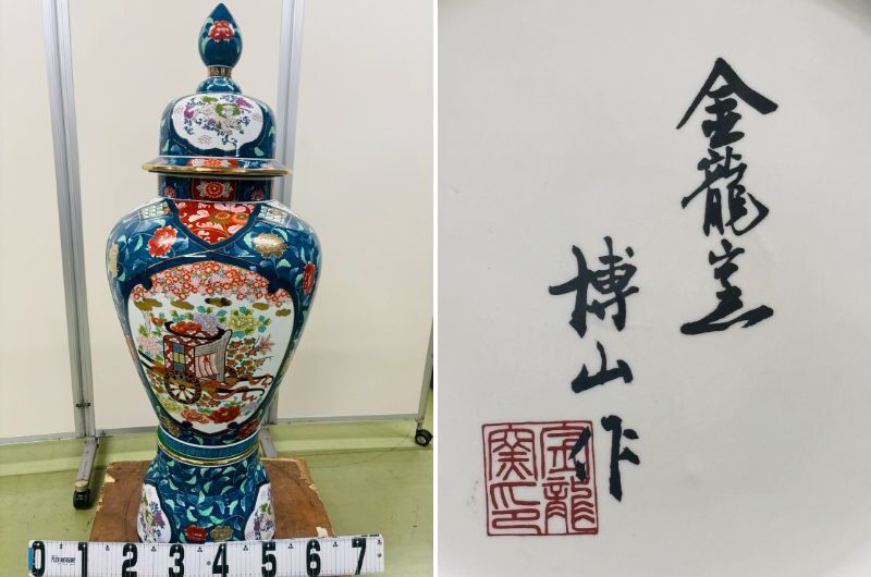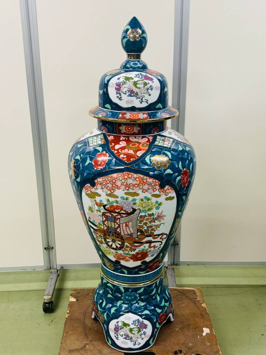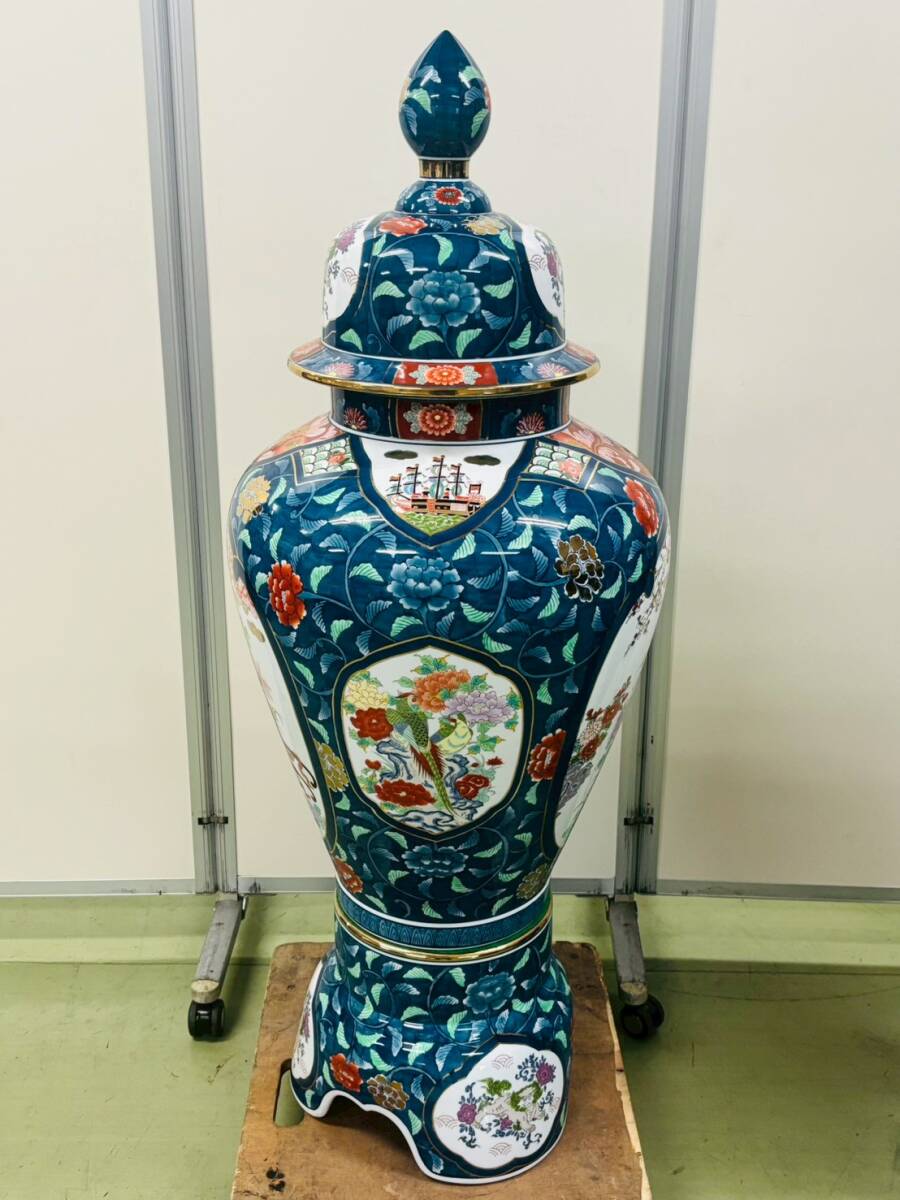 ●有田焼 金龍窯 博山作 高さ約118cm 色絵花鳥図 沈香壺 染錦 骨董 置物 飾物 日本伝統工芸品 古美術 時代物 初出 売切 長崎買取 ■全体サイズ:高さ118 cm ■上サイズ:直径 31cm/高さ 32cm ■中サイズ:直径 45cm/高さ 60cm ■下サイズ:直径 32cm/高さ 26cm ※素人寸法の為、若干の誤差はご了承ください。 ■状態につきましては経年に伴うスレ・汚れ・小キズ などが見られます。 ※その他の細かな状態は写真にてご確認・ご了承の上 ご入札くださいませ。【EI】 ●こちらの商品などは時代物や古いお品・骨董品となり ますので、細かな状態を気にされる方・神経質な方の ご入札はご遠慮くださいませ。 |