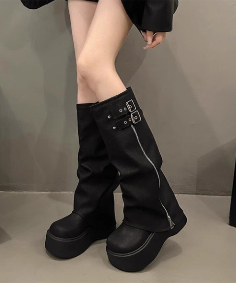 こなれ感のあるルーズシルエットが魅力のロングブーツ。