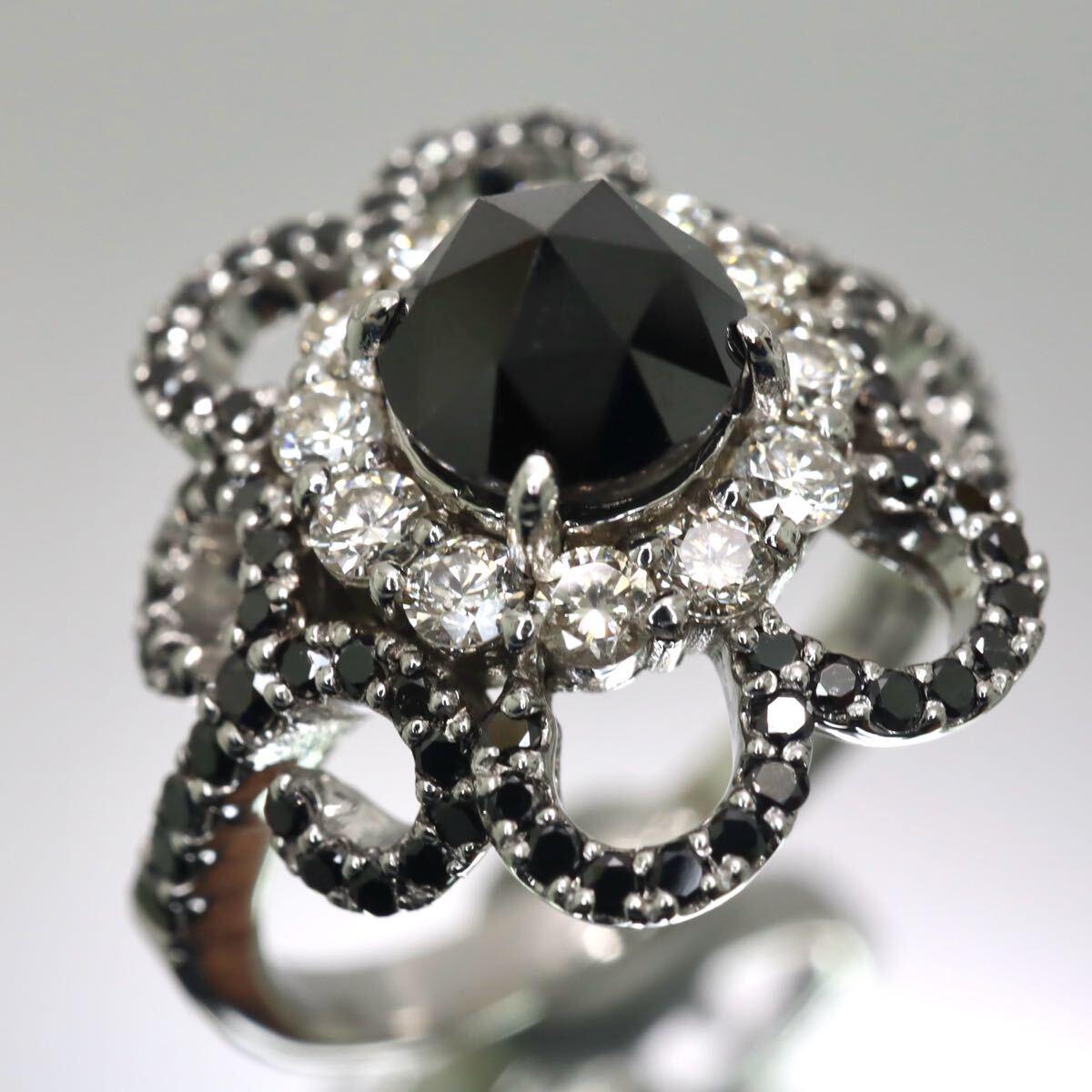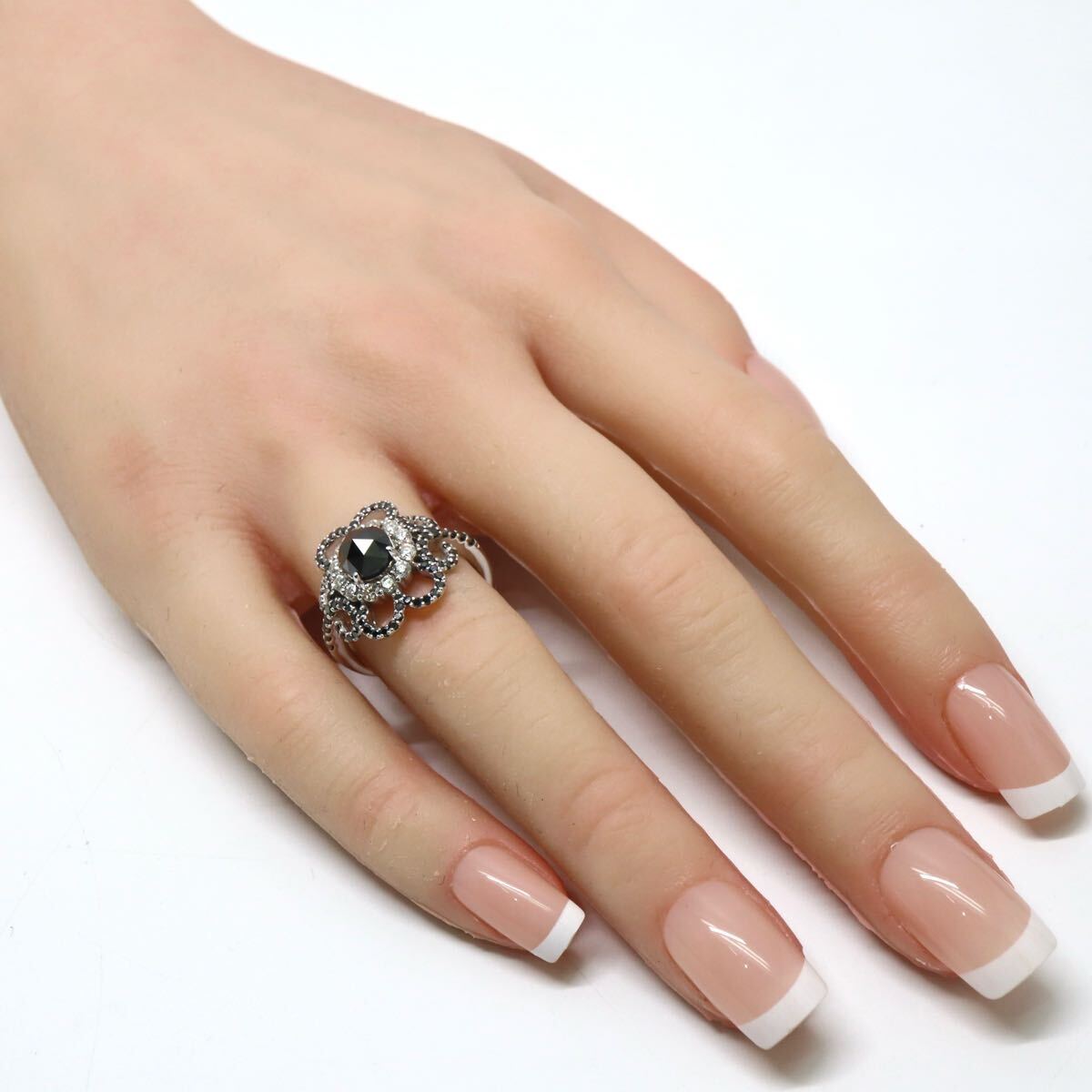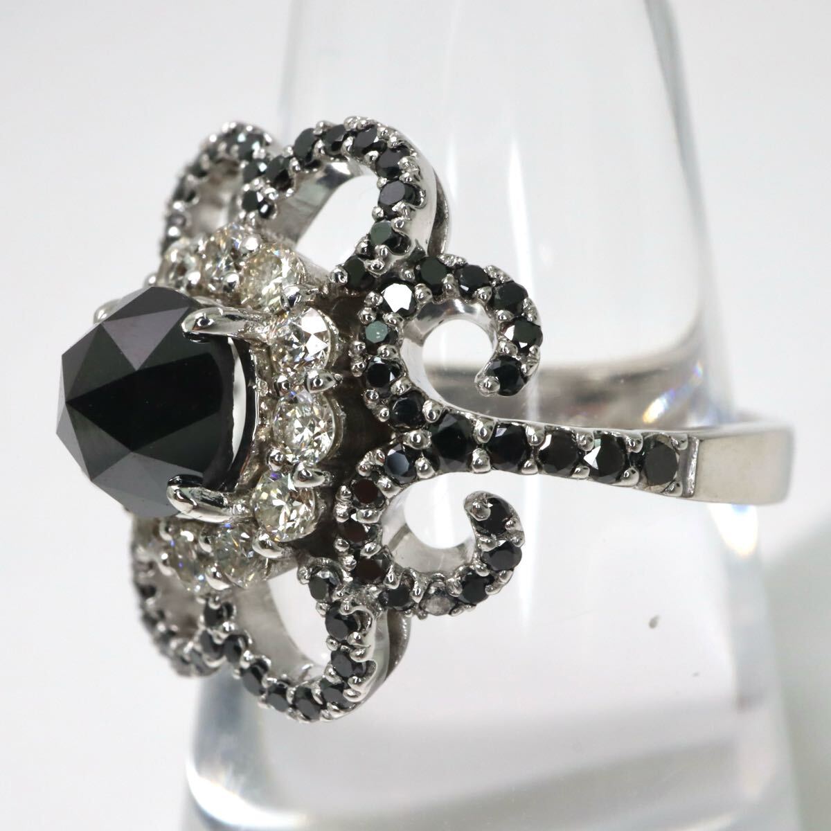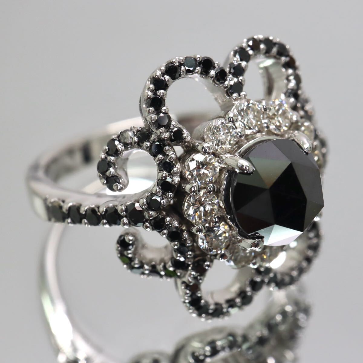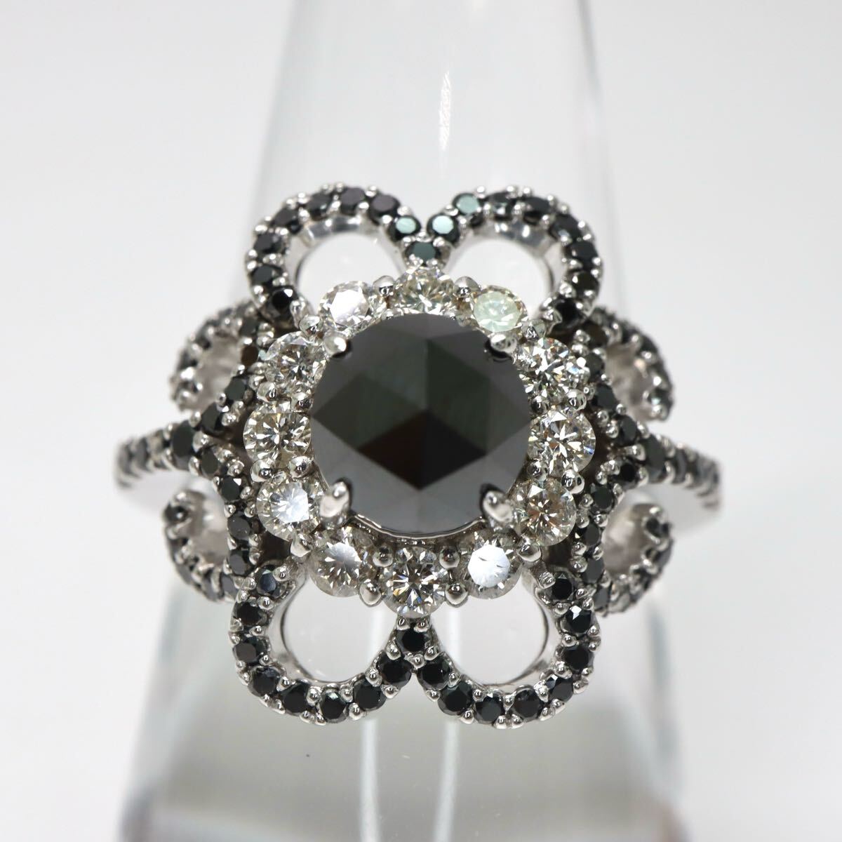 〈天然ブラックダイヤモンド/天然ダイヤモンドリング〉
