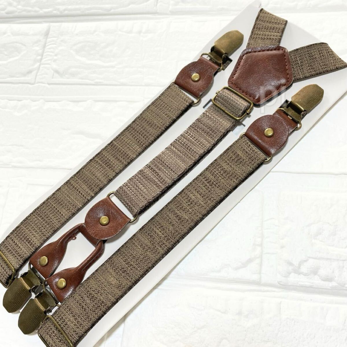 シンプルなベージュのサスペンダー。