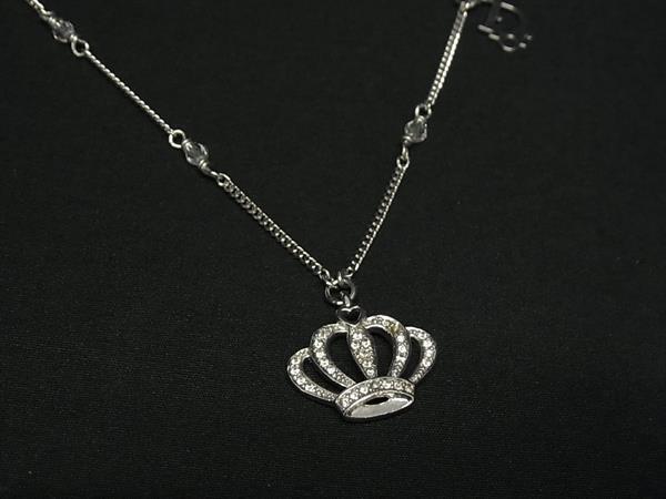1円 ■美品■ ChristianDior クリスチャンディオール ラインストーン クラウン ネックレス アクセサリー レディース シルバー系 FV1819
