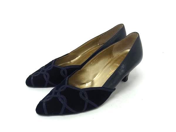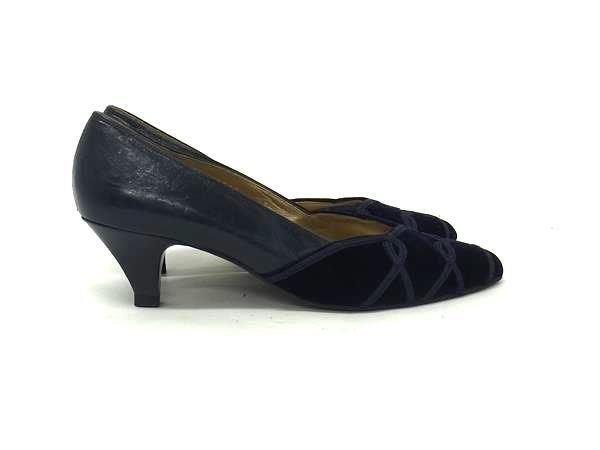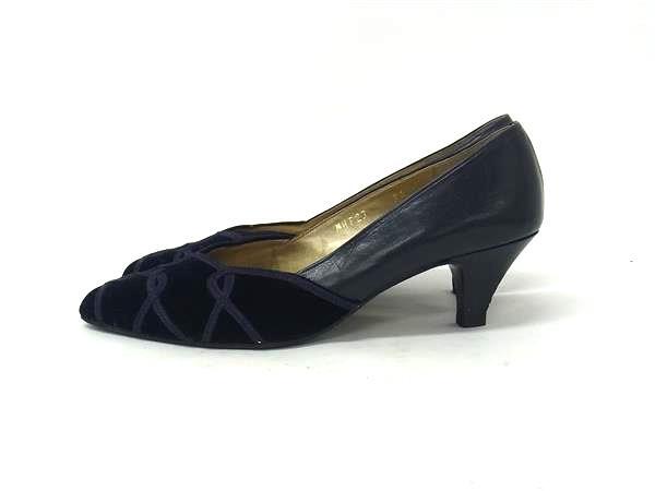 YVESSAINTLAURENT イヴサンローラン ベロア×レザー ヒール パンプス 表記サイズ 36(約23cm) 靴 シューズ ネイビー系 DJ0867