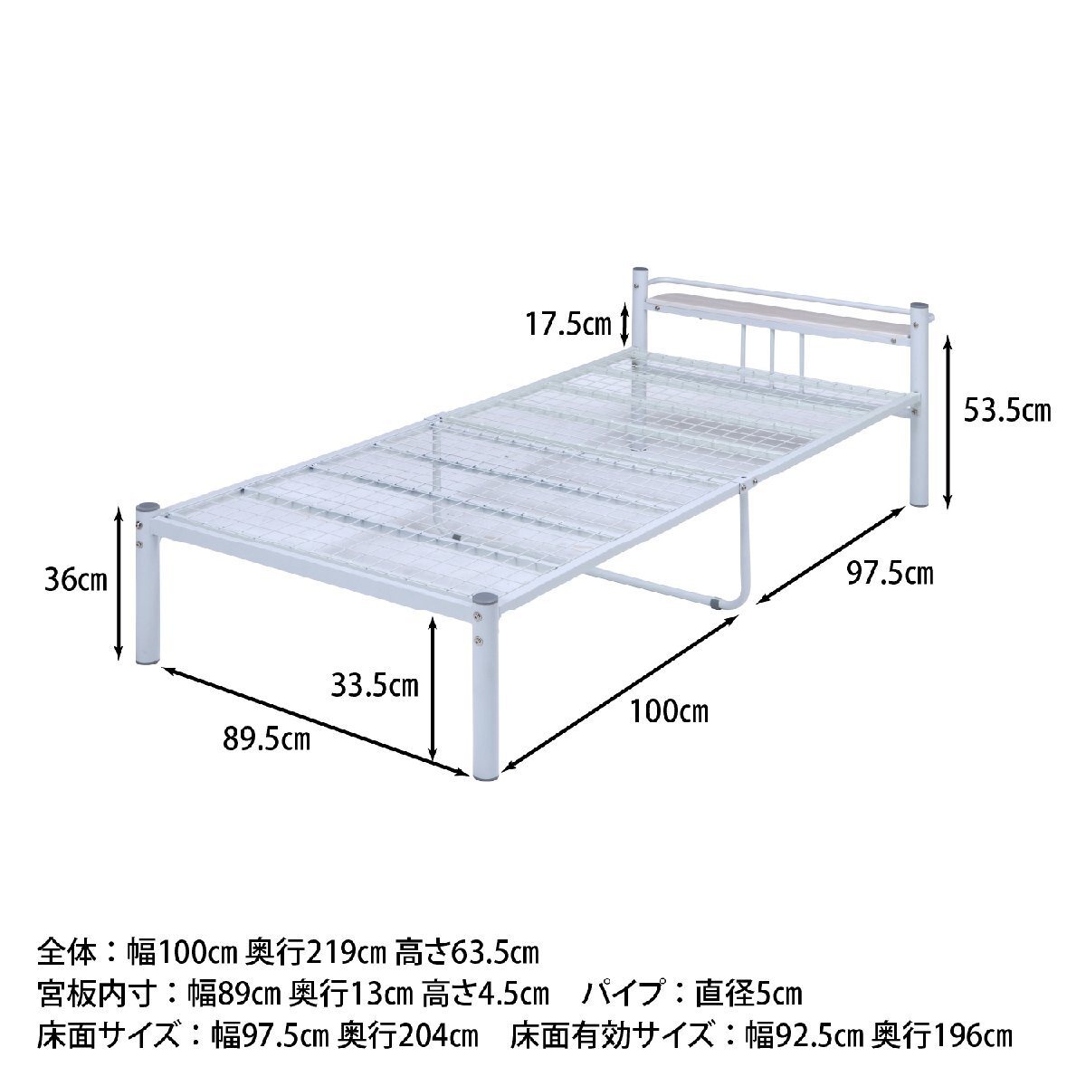 | 備 考 | ■初めての一人暮らしにぴったりです。 ■通気性の良い網棚式で湿気からお布団を守ります。 ■スマホが置ける宮棚付きです。 ※通常のお布団をこの上にお使いください。 |
