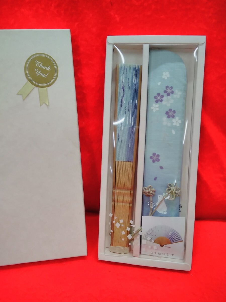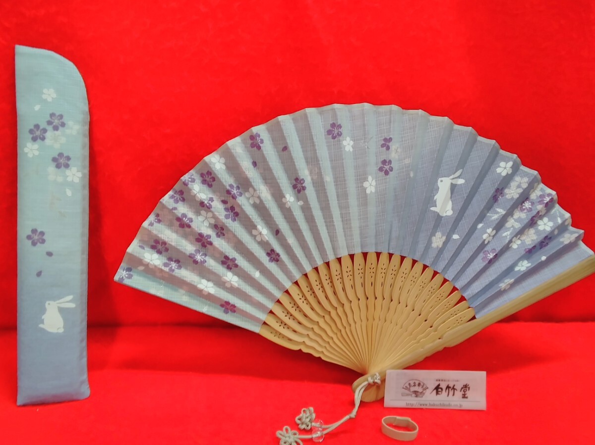 g_t P283 ファッション小物 レディース 和装小物 扇子(扇子袋付) さくらウサギ 未使用品 箱入り