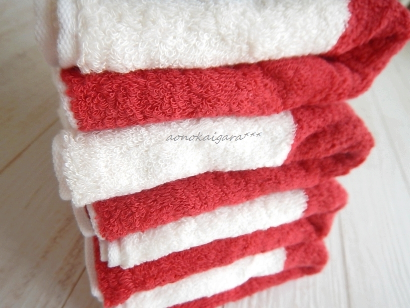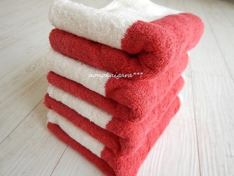 新品●今治産●とってもふわふわ●柔らか●フェイスタオル4枚●レッド×オフホワイト
