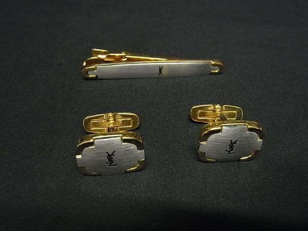 YVESSAINTLAURENT イヴサンローラン カフスボタン ネクタイピン アクセサリー 2点セット 紳士 ビジネス メンズ ゴールド系 DI8996