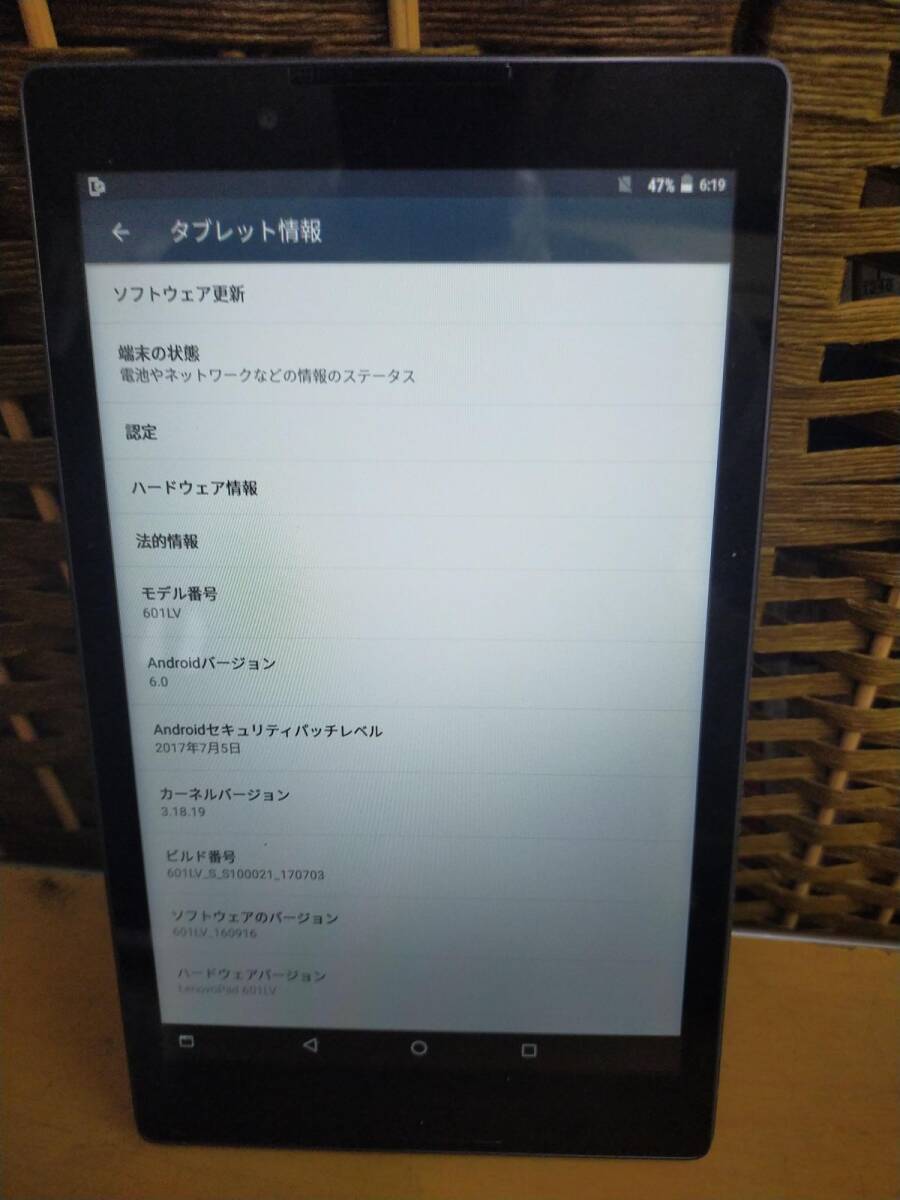 E01-20251009-02 Lenovo TAB3 601LV ブラック Wi-Fi+LTEモデル Android6 タブレット本体 初期化済みです 判定:◯