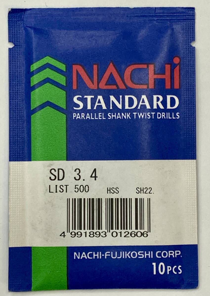 NACHI ストレートシャンク 鉄工用ドリル 3.4ミリ 10本入 1袋