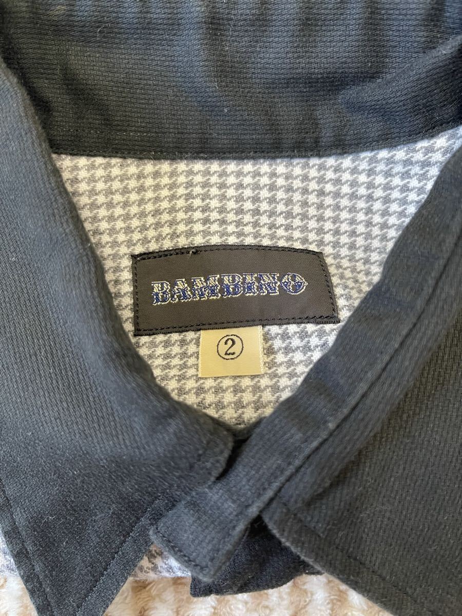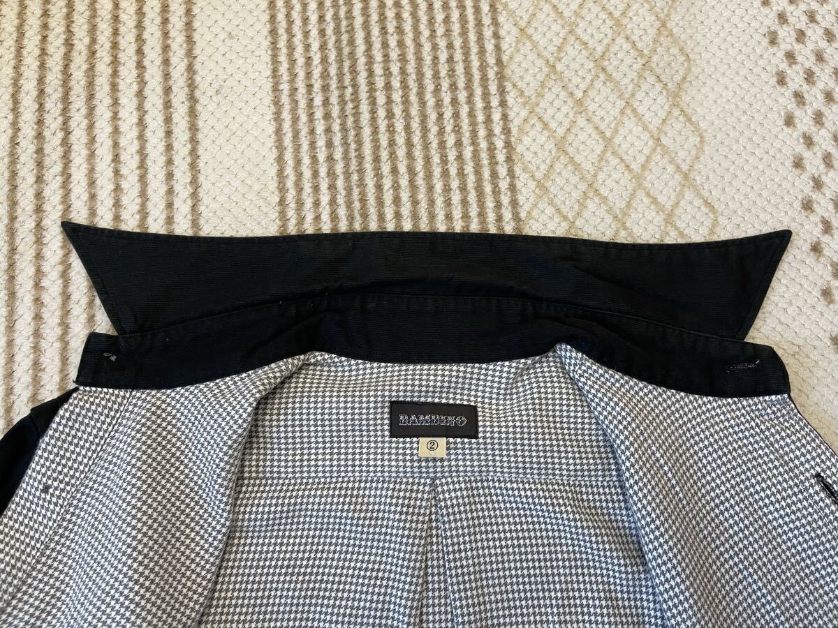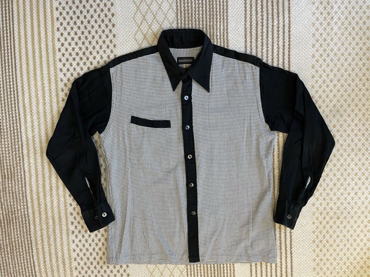 BAMBINO CO.LTD.(株式会社バンビーノ)が製造した、千鳥格子(ハウンドトゥース)柄と黒無地を大胆に切り替えたデザインが特徴の長袖シャツです。一般的なシャツと異なり、ポケットは右胸にのみ配置されています。黒い無地の生地が横一文字に施されたデザインポケットで、ブランドの個性的なデザインが光ります。