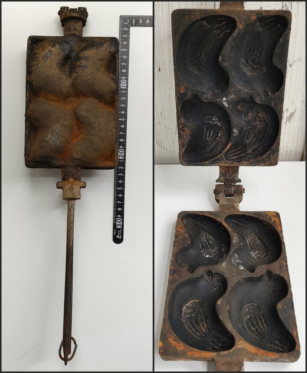 古い 菓子型 鳩 ハト ○ 回転焼き はさみ焼き 焼き菓子 鉄 金型 昭和 レトロ