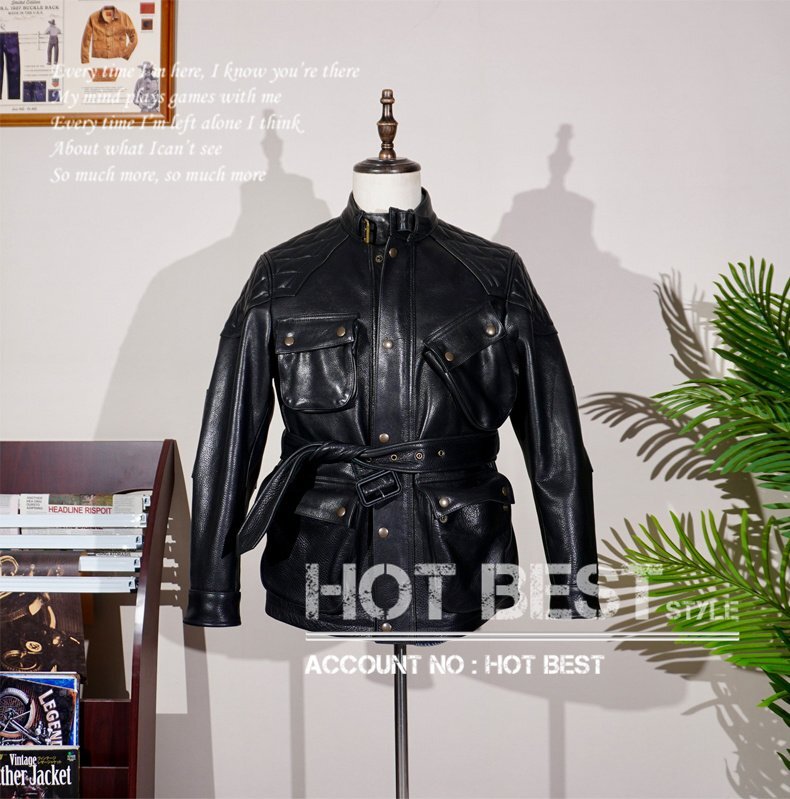 1.5mm カウハイド 復刻50'スタイル メンズ 革ジャン サファリジャケット パテッド イタリアンレザー 牛革 Y1260/S