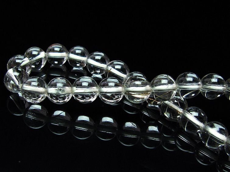 ■商品名: 金針ルチル水晶ブレスレット ■商品ID: T684-3244 ■商品重量:約 13.1g ■商品サイズ:内周約:156mm(±5mm)粒直径約:7mm(±0.5mm) 【ルチルクォーツ(針入水晶)】 ルチルクォーツは近年大人気の針状物質が入った水晶です。繊細な針が水晶の中でひしめきあい、きらきらと輝く様はまさに自然の芸術品。 様々な色のタイプがありますが、共通する効果としては財運や金運を強力に集め、事業運、商売運、目標達成、直観力をもパワーアップさせると言います。また邪気を払ってくれるとされています。 財に関わる直観力が冴えるとされますので、投資やギャンブル運アップも期待できます。 ■ワンポイント情報 一般にクリアでかつ金針が密集しているもの程価値があるとされていますが、内包物を含む水晶は濁ったように結晶しやすく、ルチルクォーツは針が多くなるとどうしても透明感は下がってきます。しかしながら天然石は世界に一つしかありません。いろいろ状態のルチルがありますので直感で閃いたものが、世界で一人の自分のための水晶といえるでしょう。 気の遠くなるような年月をかけ育つ水晶の中に、偶然に針状物質が入り込む。この奇跡のような自然の神秘に是非触れてみて下さい。体の底からパワーが湧き出してくるはずです。 【水晶(石英、クリスタルクォーツ)】 水晶とは石英を指しますが、一般的に無色透明のものをクリアクォーツやロッククリスタルと呼んでいます。 水のように美しく透き通ったものが良いと思われがちですが、内部にヒビや他の鉱物などのインクルージョン(内包物)が入っているものがあり、それが天然物の証。また、インクルージョンによって様々な種類に分類され、それぞれ違った印象を与えてくれます。 古くから呪い事に使われてきた水晶に秘められたパワーはとても万能で、あらゆる場面に対応するといわれています。特に邪気を祓う力が強いため、人間関係を円滑にしたり、心身をクリアな状態にしたい場合に最適です。また空間を浄化する作用もあるとされ、インテリアとしても高い人気を誇っています。 石自体に強い自浄作用があり、他のパワーストーンが吸収した負のエネルギーを浄化するといわれています。更にアクセサリーとして他の石と組み合わせる場合、それぞれの石の個性を引き出しバランスを取ってくれる効果があるそうなので、ぜひとも組み込んでおきたいですね。 パワーストーン入門に最適な水晶ですが、愛好家にとってはかなり奥が深く最後に行き着くのもこの石なんだそうです。何もかもを見透かすような透明な水晶には、本当に神秘的なパワーが宿っているのかもしれません。 |