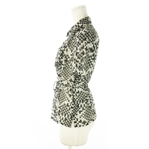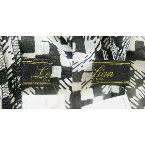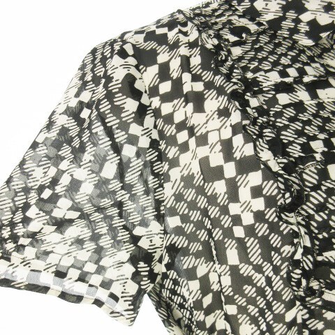 レリアン Leilian シアーシャツ ブラウス 半袖 フリル チェック 総柄 リボン 11 黒 ブラック /AO1 レディース