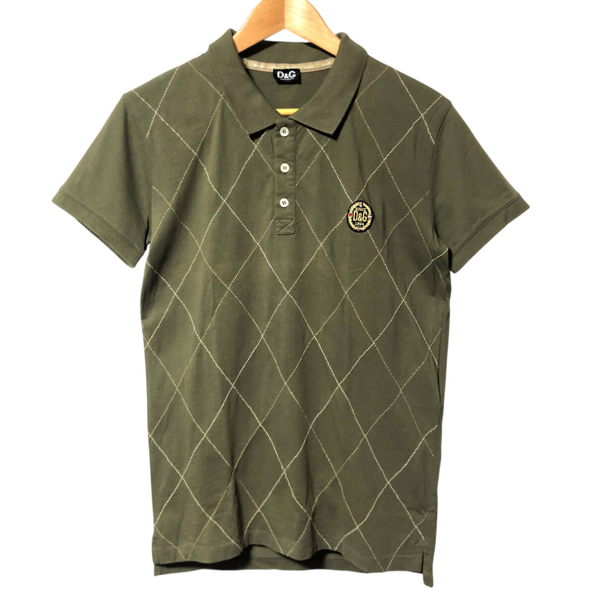 D&G DOLCE&GABBANA ドルチェ&ガッバーナ ポロシャツ ロゴ ワッペン ステッチ 半袖 S カーキ メンズ A11