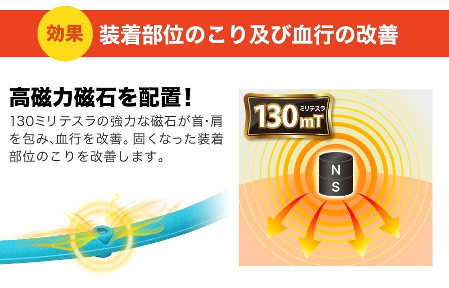 多くの人が悩んでいる肩こりを、磁気のチカラで改善!首周りに沿って配置された4つの強力な磁気が首・肩を包み、血行を改善。