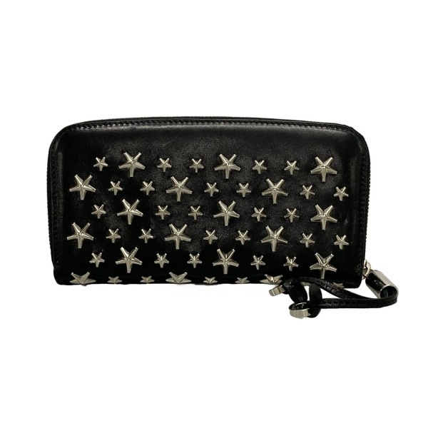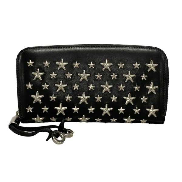 ジミーチュウ JIMMY CHOO 長財布 フィリッパ レザー 黒 ラウンドファスナー/スタッズ/スター(星)/ホログラムシールあり 美品 財布