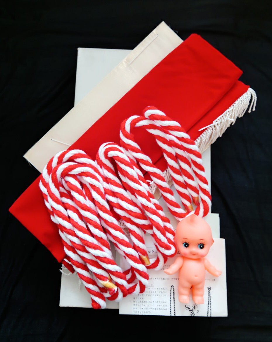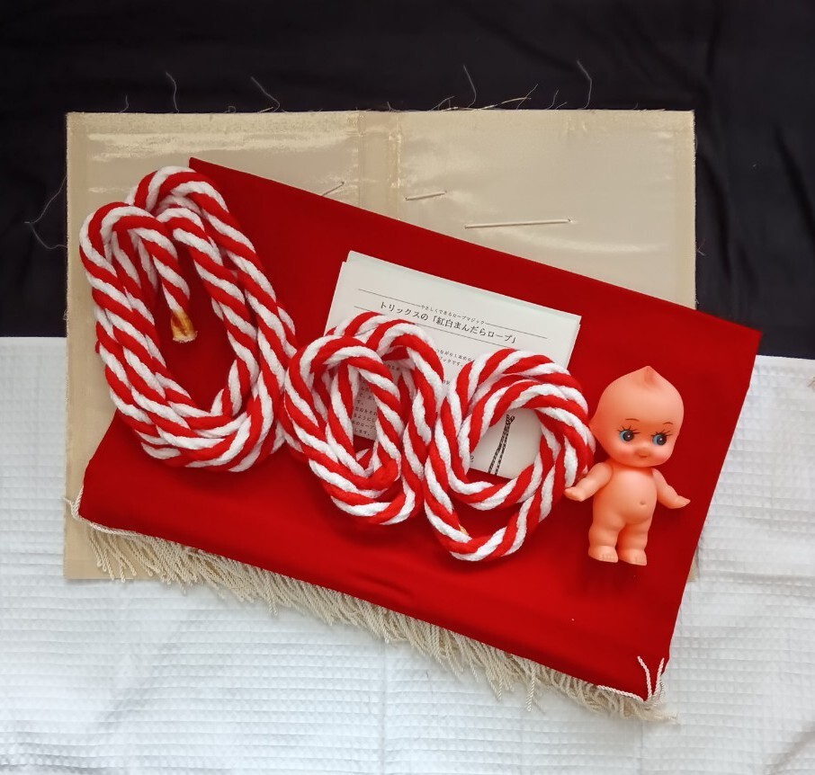 ★紅白ロープ3本:A-225cm、B-130cm、C-100cm、ロープの太さ 円周約6cm。
